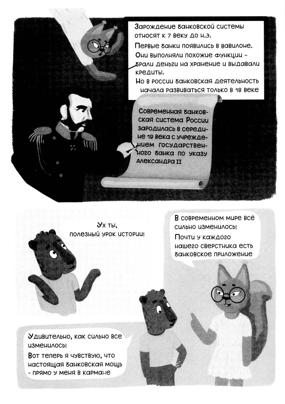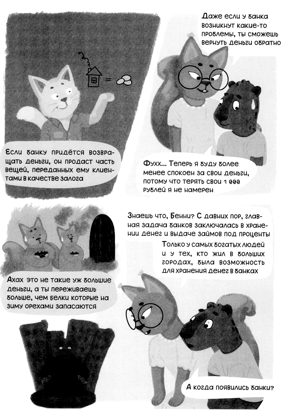 Эта книжка-комикс подготовит детей к взрослой жизни. Научит их как ориентироваться в мире финансов, погружаясь в приключения банковских вкладов. Главные герои в простой и доступной форме расскажут, что такое банк, зачем он нужен, как работают вклады и кредиты. Вам откроются секреты банков и загадки денег. Юные читатели узнают об истории банковской системы, правилах финансовой безопасности и секретах разумного управления деньгами. Смешные диалоги, яркие иллюстрации и увлекательные задания делают обучение финансовой грамотности не только полезным, но и весёлым. Вперед к путешествиям вместе с героями комикса! Узнайте о тайных возможностях банков, удобствах, предложениях и преимуществах банковских карт. Книга станет отличным подарком для детей, которые стремятся понять основы экономики и развить навыки управления личным бюджетом.| Издательство | Салон-Пресс |