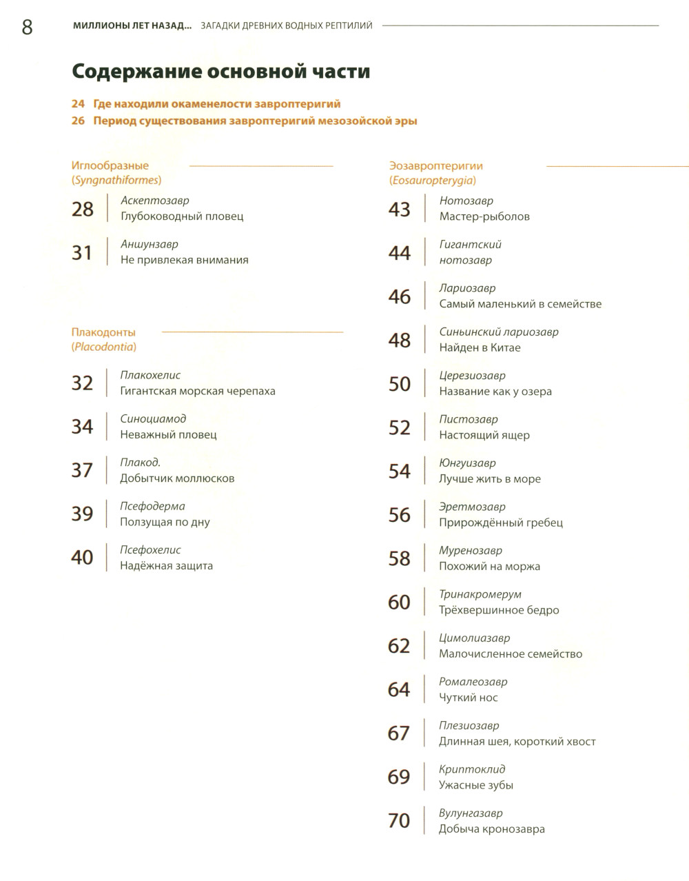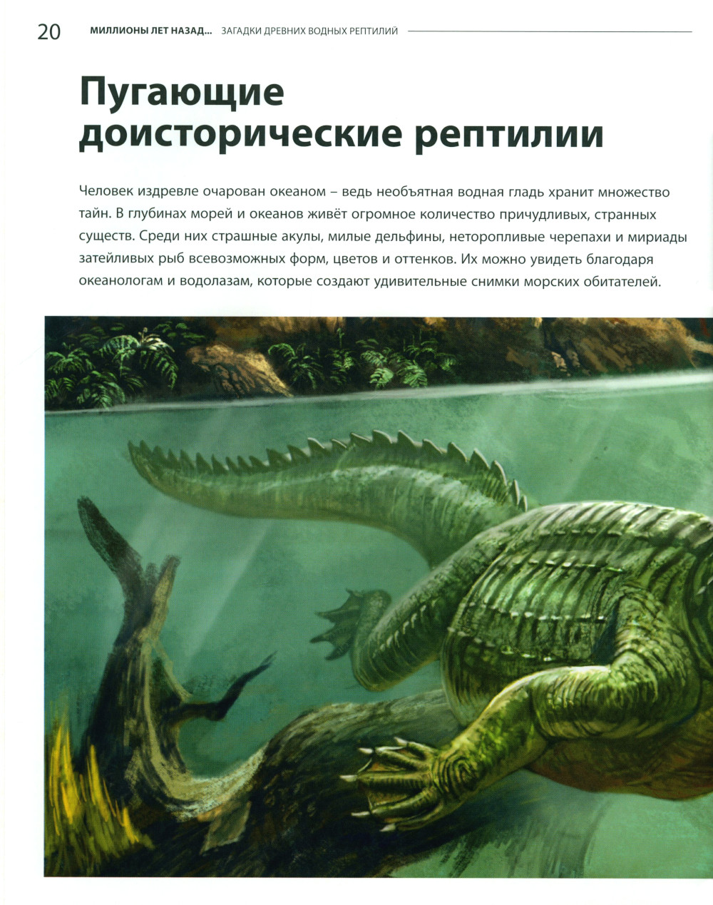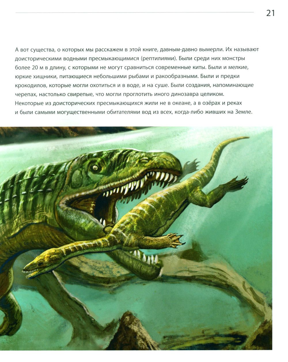 Эта познавательная книга с уникальными научно-художественными иллюстрациями известного китайского художника Чжуана Чжао рассказывает о водных рептилиях мезозойской эры. Она создана в тесном сотрудничестве с известными учёными из крупнейших мировых университетов на основе последних открытий в области палеонтологии.
