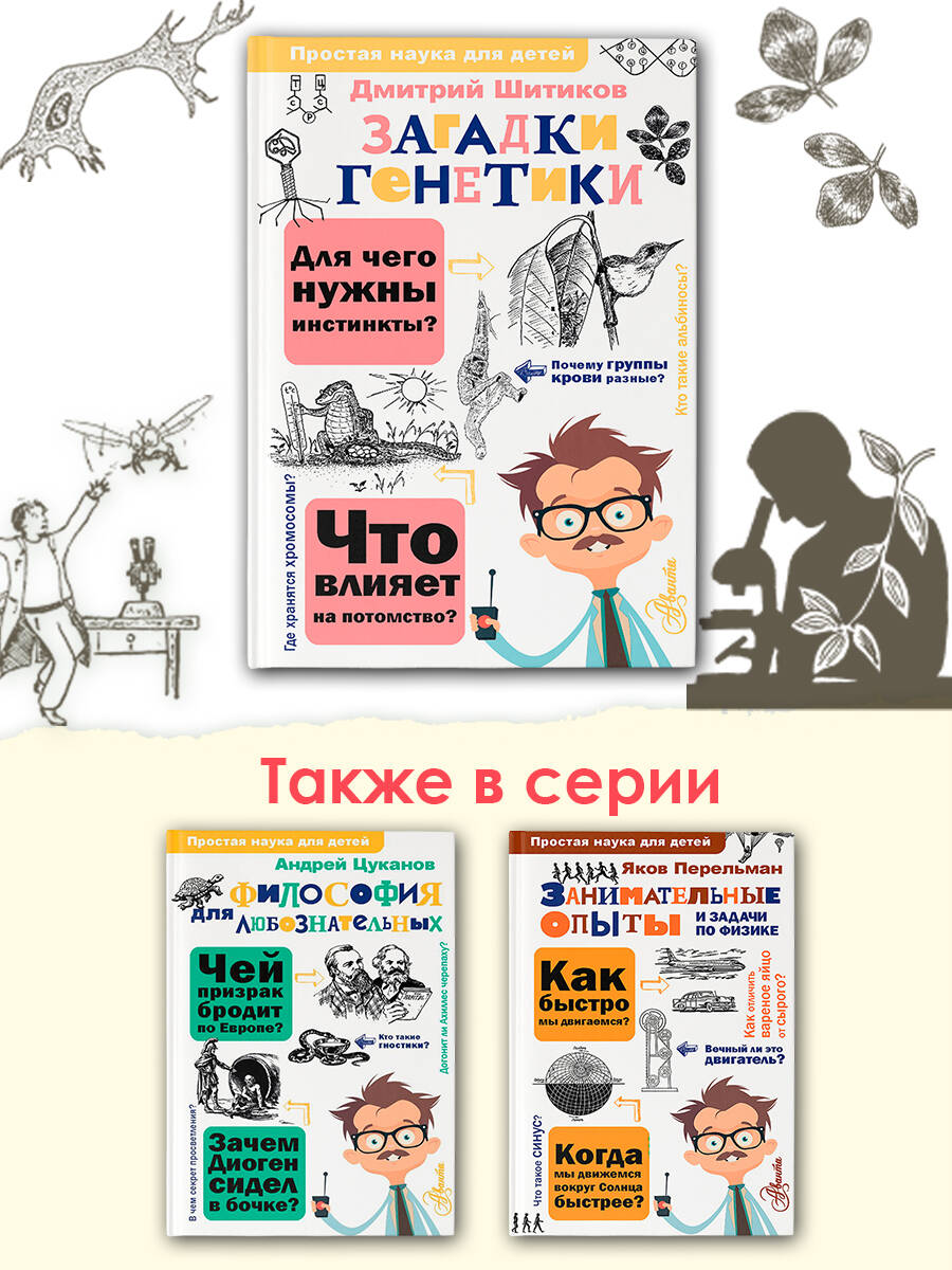Книга Дмитрия Шитикова "Загадки генетики" расскажет о крохотных частицах - ДНК, хранящих генетическую информацию и отвечающих за огромное разнообразие организмов на Земле: за их качества, способности, инстинкты и предрасположенности к болезням. А еще за то, что мы похожи на своих родителей и способны наследовать черты их характера или внешности. Автор расскажет, что такое наследственность, зачем Грегор Мендель сеял горох, бывают ли трехцветные коты, существует ли ген гениальности, как ученые скрещивают гены разных организмов, и еще много-много всего... Для среднего школьного возраста.