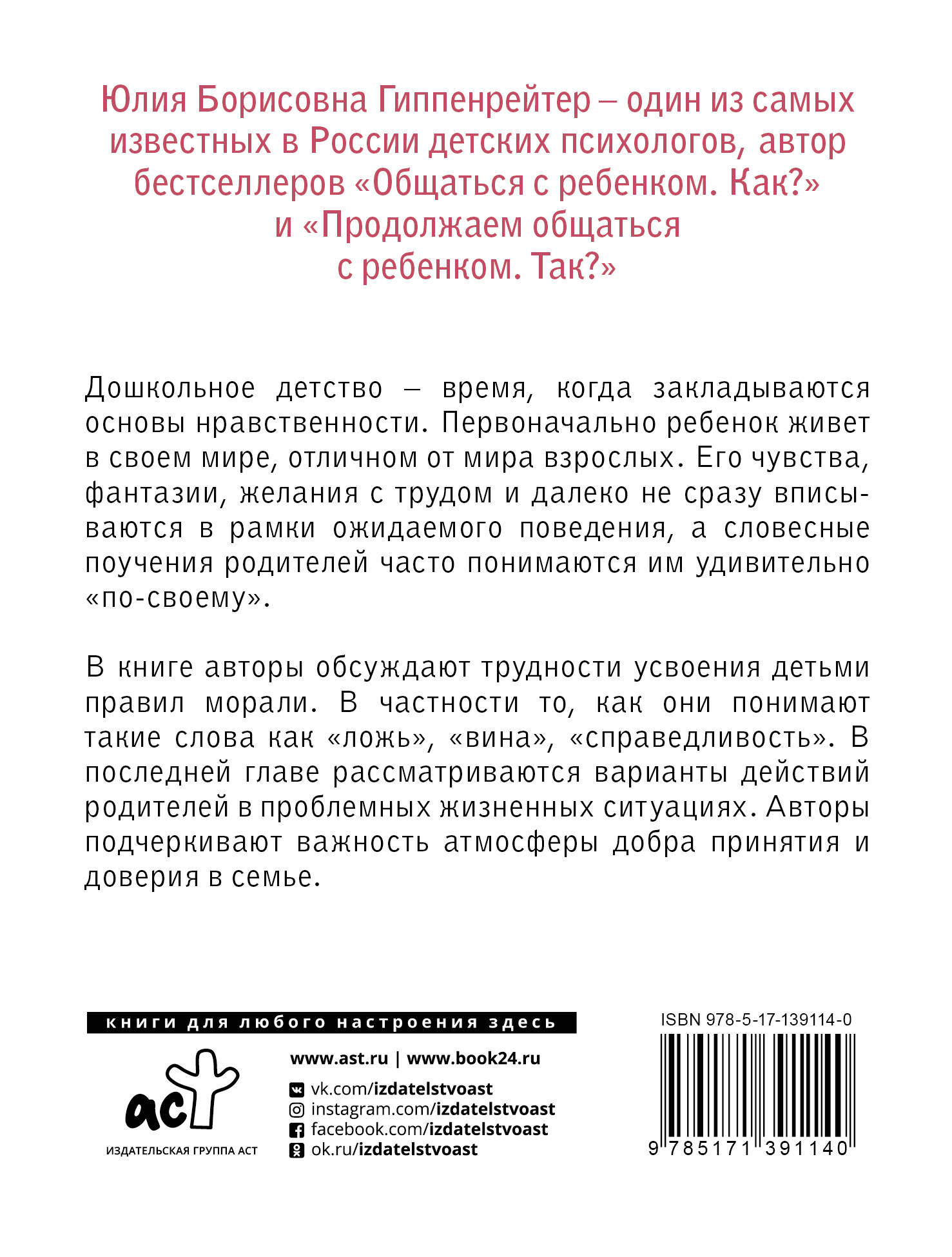 Юлия Борисовна Гиппенрейтер - один из самых известных в России детских психологов, автор бестселлеров "Общаться с ребенком. Как?" и "Продолжаем общаться с ребенком. Так?" В книге "Как общаться с маленьким ребенком" собраны самые актуальные вопросы о моральном воспитании ребенка до 7 лет. Юлия Борисовна и Алексей Николаевич на примерах рассказывают о стадиях морального развития, и проблемах, с которыми сталкиваются родители. Комментарии авторов помогут родителям избегать конфликтов в разговорах с детьми. Огромный практический опыт авторов и реальные случаи из жизни делают эту книгу незаменимым помощником для всех мам и пап.| Издательство | ИЗДАТЕЛЬСТВО "АСТ" |