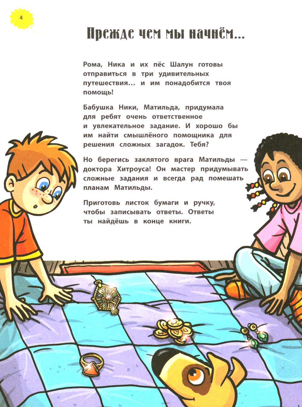 Присоединяйся к Нике, Роме и Шалуну в приключениях по миру загадок, тайн и несметных сокровищ! Тебя ждут лабиринты, загадки, логические головоломки, секретные места, хитроумные планы и отважные герои!| Издательство | Эксмо |
