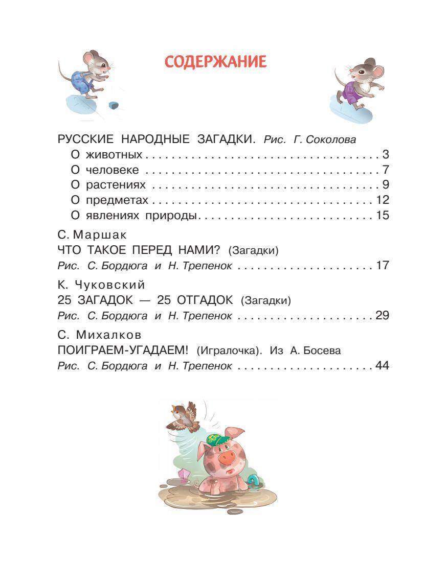 "Загадки в стихах и картинках" - это отличный тренажёр для развития логики, внимательности, памяти и ассоциативного мышления. Загадки играют очень важную роль в образовании и творческом развитии детей. В этой книге собраны самые знаменитые русские народные загадки, загадки С. Маршака, С. Михалкова и К. Чуковского, которые раширят кругозор ребёнка и познакомят с основными понятиями окружающего мира. Наглядные рисунки С. Бордюга, Н. Трепенок и Г. Соколова помогут с лёгкостью отгадать загадки. Для проверки ответов ко всем загадкам даны отгадки. Для дошкольного возраста.| Издательство | АСТ |
