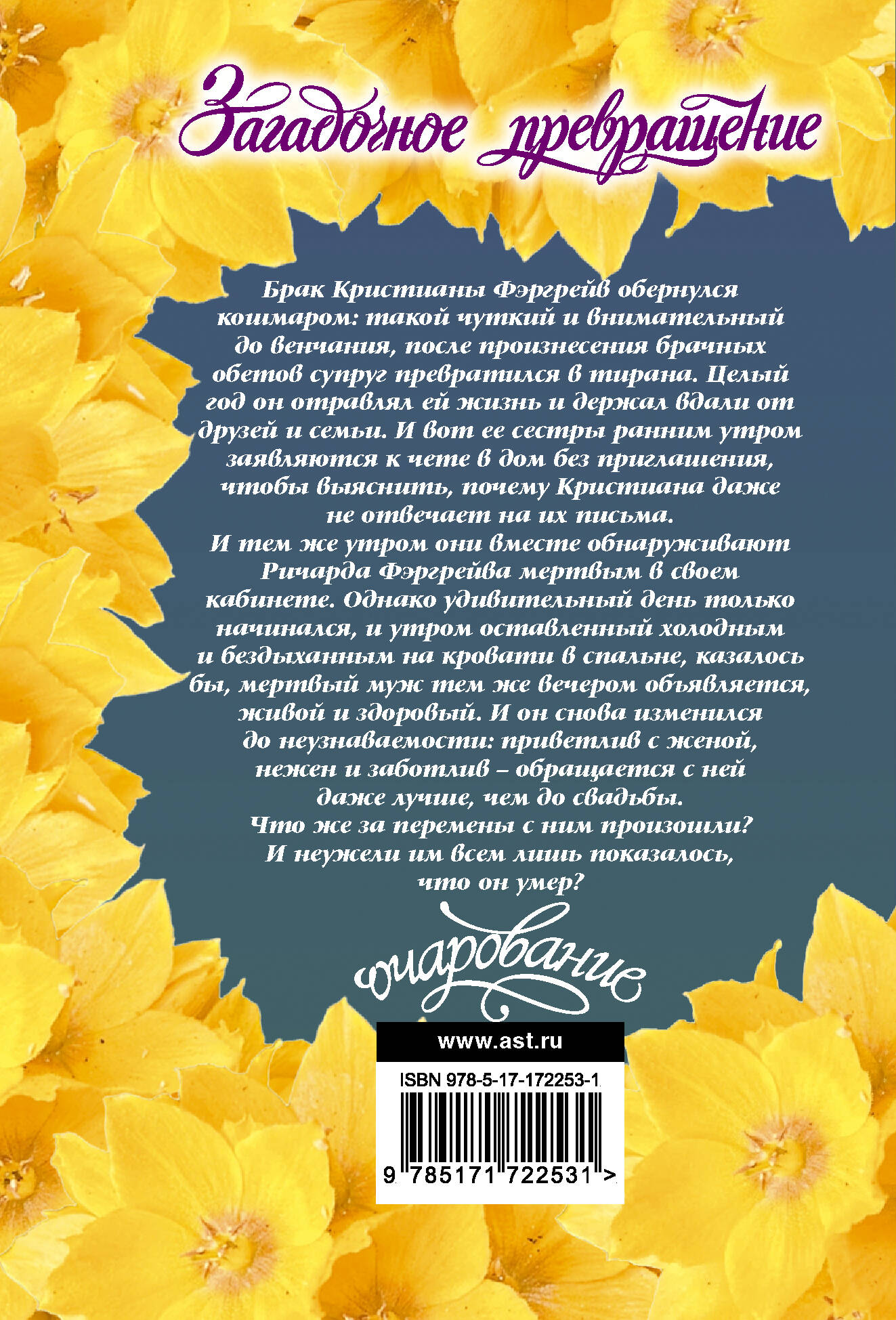 Брак Кристианы Фэргрейв обернулся кошмаром: такой чуткий и внимательный до венчания, после произнесения брачных обетов супруг превратился в тирана. Целый год он отравлял ей жизнь и держал вдали от друзей и семьи. И вот ее сестры ранним утром заявляются к чете в дом без приглашения, чтобы выяснить, почему Кристиана даже не отвечает на их письма. И тем же утром они вместе обнаруживают Ричарда Фэргрейва мертвым в своем кабинете. Однако удивительный день только начинался, и утром оставленный холодным и бездыханным на кровати в спальне, казалось бы, мертвый муж тем же вечером объявляется, живой и здоровый. И он снова изменился до неузнаваемости: приветлив с женой, нежен и заботлив - обращается с ней даже лучше, чем до свадьбы. Что же за перемены с ним произошли? И неужели им всем лишь показалось, что он умер?| Издательство | Издательство "АСТ" |