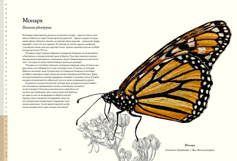 Эта книга познакомит вас с самыми яркими, красивыми и необычными бабочками. Некоторые из них, например птицекрыл королевы Александры и павлиноглазка атлас, поражают размахом крыльев, другие, как монарх, восхищают своей способностью к перелётам на тысячи километров, третьи, вроде длиннохвостого шкипера, - стремительностью полёта. Красивые иллюстрации позволяют рассмотреть представителей разных видов в мельчайших деталях и понять их реальные размеры, а подробные описания каждой бабочки помогут вам лучше узнать о её жизни: где бабочка обитает, чем она питается, как цвет и узор её крыльев помогают ей маскироваться в природе и взаимодействовать с сородичами, и многое другое. Откройте для себя мир бабочек, хрупкий и прекрасный!