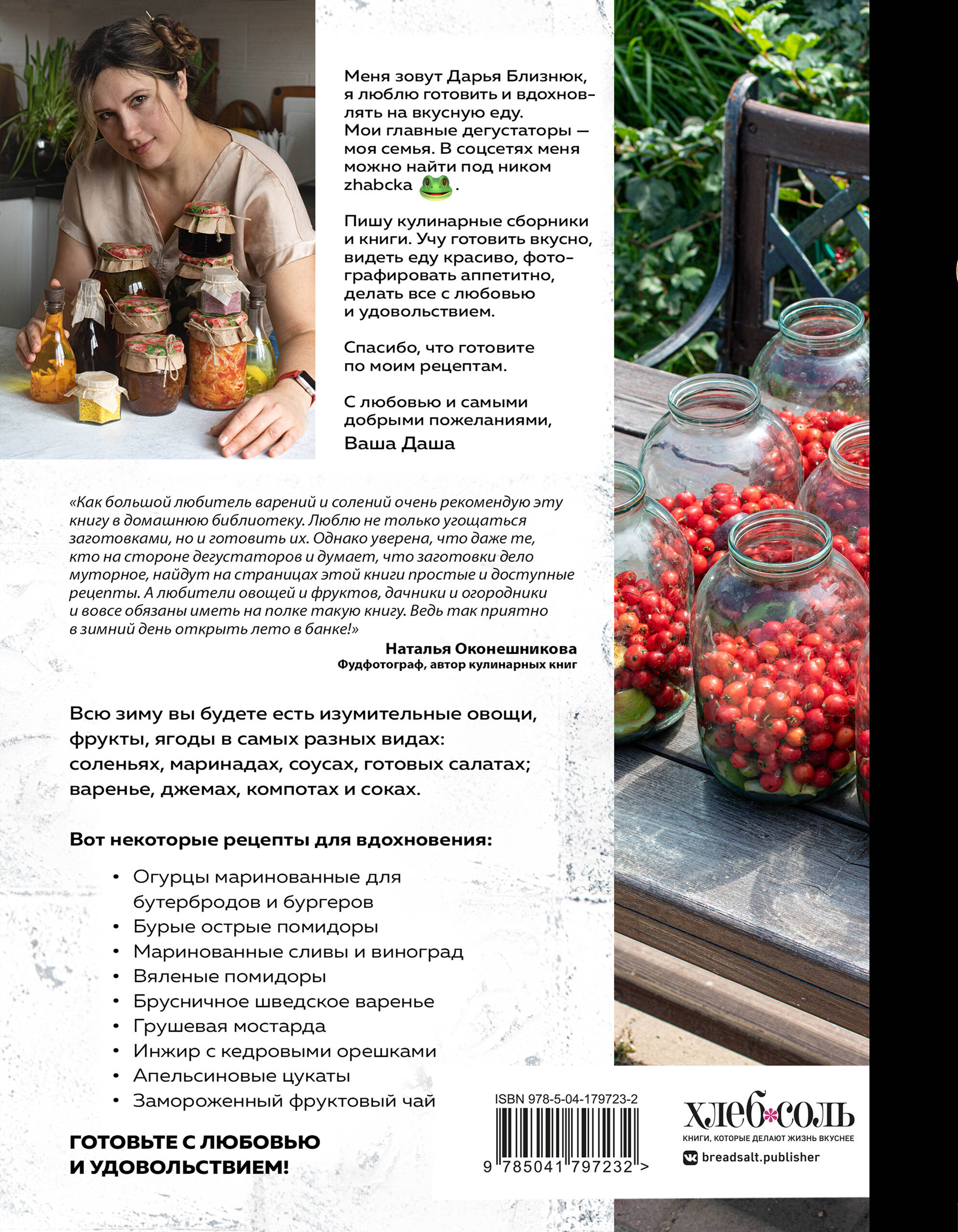У Даши Близнюк - давно созданная и все возрастающая аудитория поклонников. Она есть и ВКонтакте и в Телеграм. Ее рецепты узнают, ждут, готовят по ним и выкладывают счастливые отзывы. Потому что получается все и очень вкусно. Эта книга - пятая. Первой была о Пасхе, затем о тортах, не забыла автор и про семейные обеды, и про магию пирогов. И вот теперь представила очень любимую ей самой тему консервирования. Во-первых, в начале, Даша рассказывает, как она готовится к этому процессу. Во-вторых, разумеется, предлагает более 50 рецептов заготовок из овощей и фруктов, салатов и закусок, соусов, которые сейчас пользуются особым спросом, и напитков. Все блюда приготовлены и сфотографированы автором, сопровождаются дельными советами и непосредственными ее эмоциями. Вкусно, полезно, уютно!| Издательство | ООО "Издательство "Эксмо" |