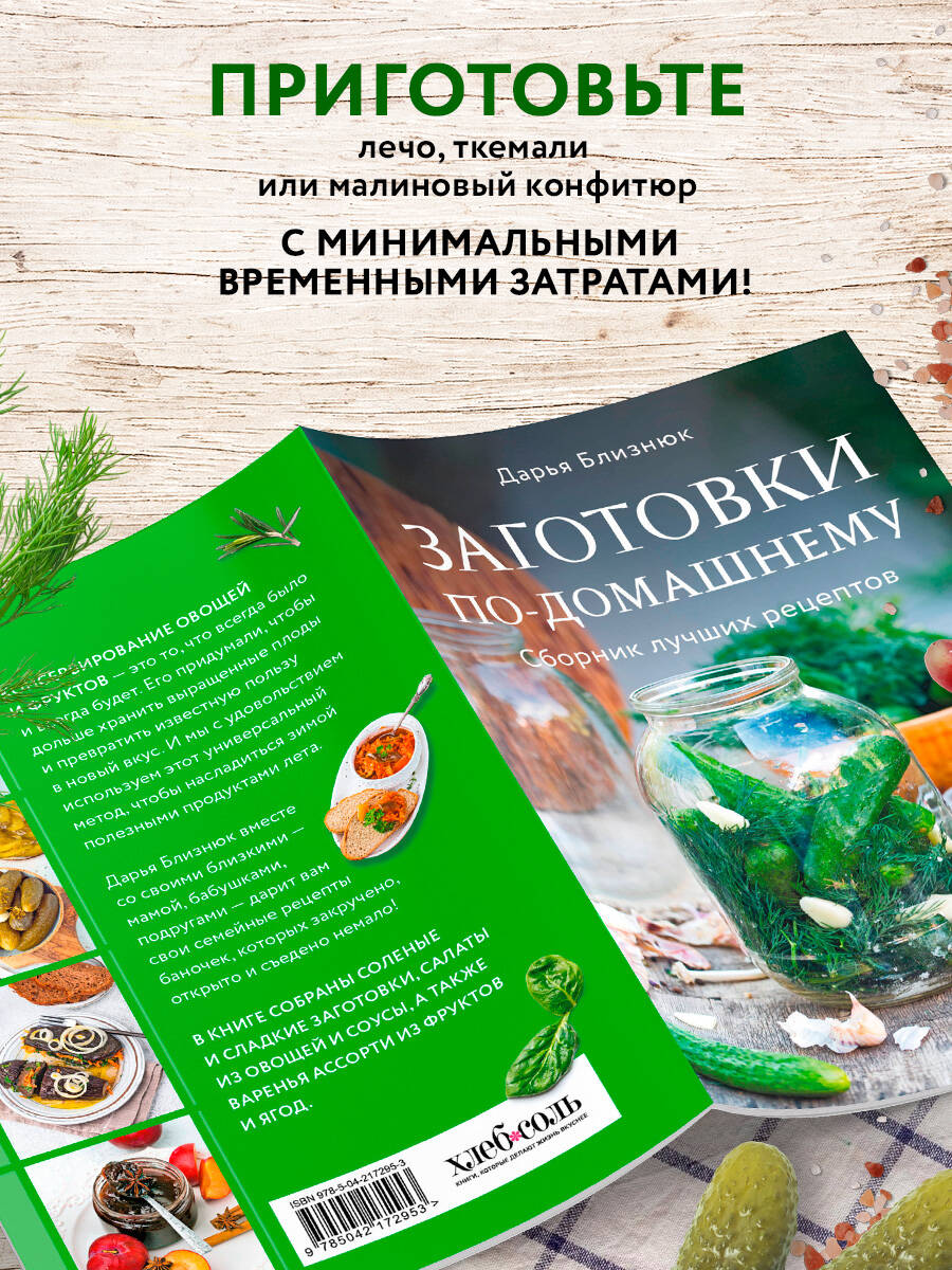 Самые удачные и простые в приготовлении рецепты собраны в этой небольшой книге. Малосольные огурцы нескольких видов, квашеные капуста и баклажаны, маринованные помидоры, лук и редис, икра из кабачков и из баклажанов, соусы чатни и ткемали, абрикосовое и брусничное варенье и многое другое. Разнообразно, доступно, просто и очень вкусно! Главное то, что рецепты авторские. Даша Близнюк - настоящая волшебница. Все, что вы приготовите - получится!