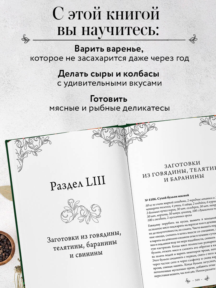 В классическом издании «Подарок молодым хозяйкам» Елены Молоховец имеется раздел «Заготовки». Мы сделали отдельную книгу, т.к. в новую редакцию основной, с нашими примечаниями и уточнениями, некоторые разделы не поместились. А тема заготовок занимает у хозяек одно из главных мест. Здесь вы найдете рецепты заготовок овощей и фруктов, правила хранения и консервации рыбы и мяса, рецепты создания различных сыров и домашних напитков. Нумерация разделов и рецептов сохранена такой, какой она была в классическом издании.| Издательство | ООО "Издательство "Эксмо" |