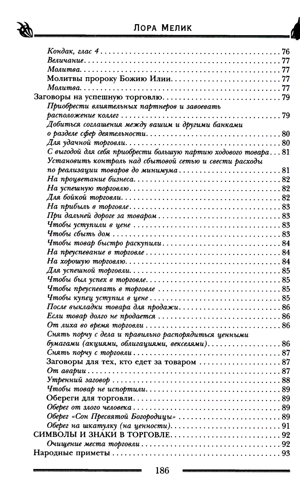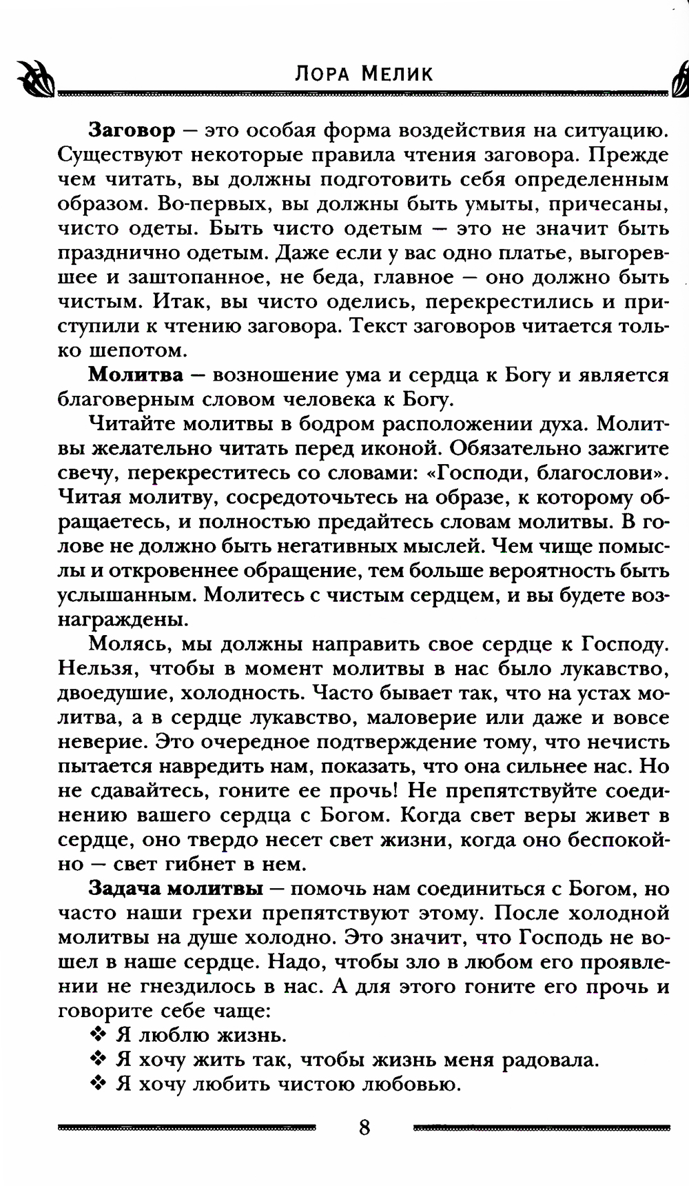Новая книга Лоры Мелик рассматривает удачу с разных сторон: как везение в повседневной жизни, так и успех в своем деле и на работе, раскрытие своего потенциала, придающие каждому дню радость и смысл. Мощные молитвы и заговоры, спасавшие наших предков в течение многих поколений, помогут обрести подлинное счастье, будут оберегать в дороге и защитят от коварных происков недоброжелателей, в том числе помогут снять порчу и сглаз. Способствуют они и избавлению от бедности и привлечению в жизнь достатка, в том числе не материального, а духовного богатства. Расскажет автор и об амулетах и талисманах, которые стоит носить с собой не только для того, чтобы приманить удачу, но и чтобы развить сильные стороны характера владельца.| Издательство | Центрполиграф |