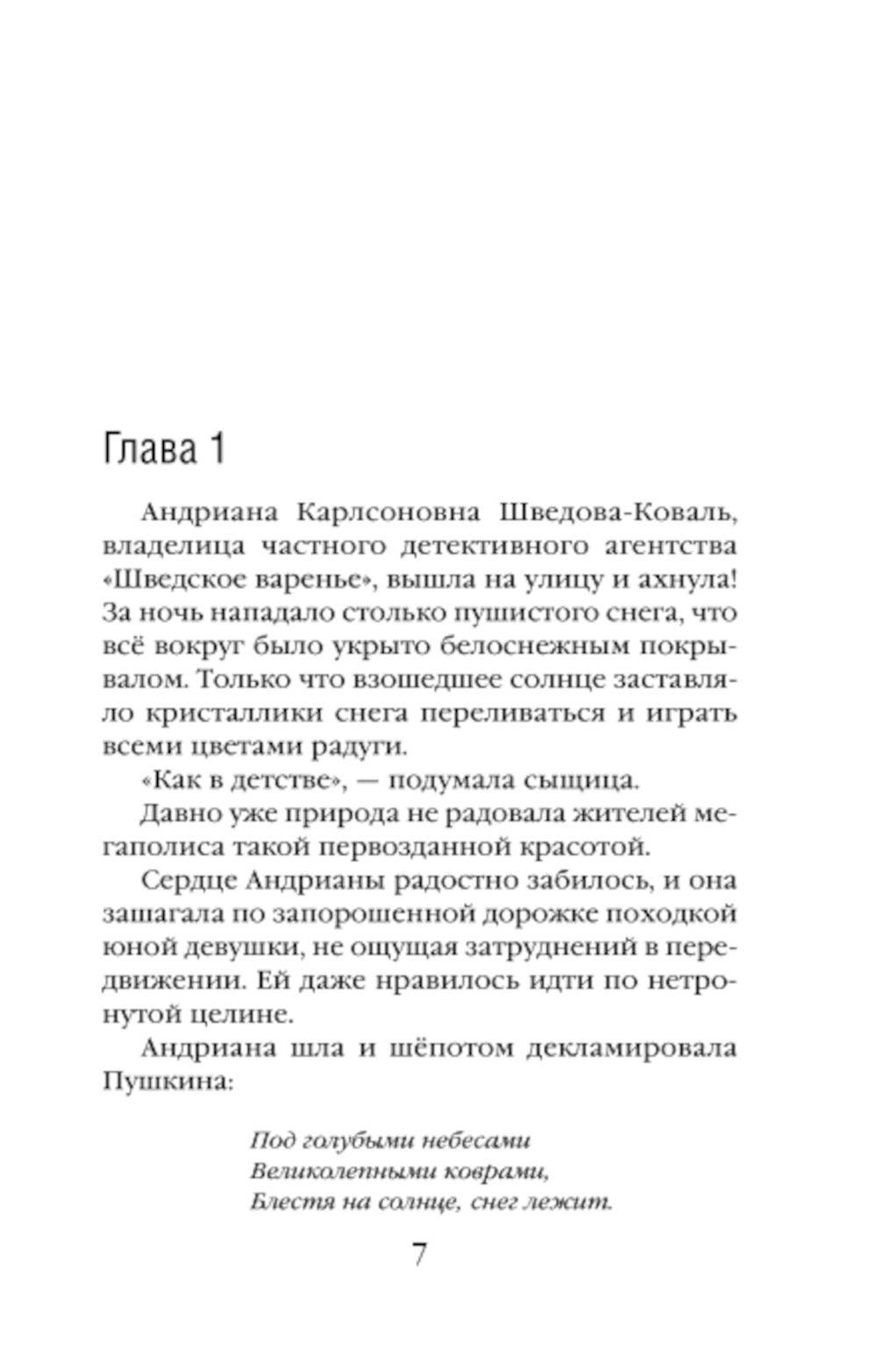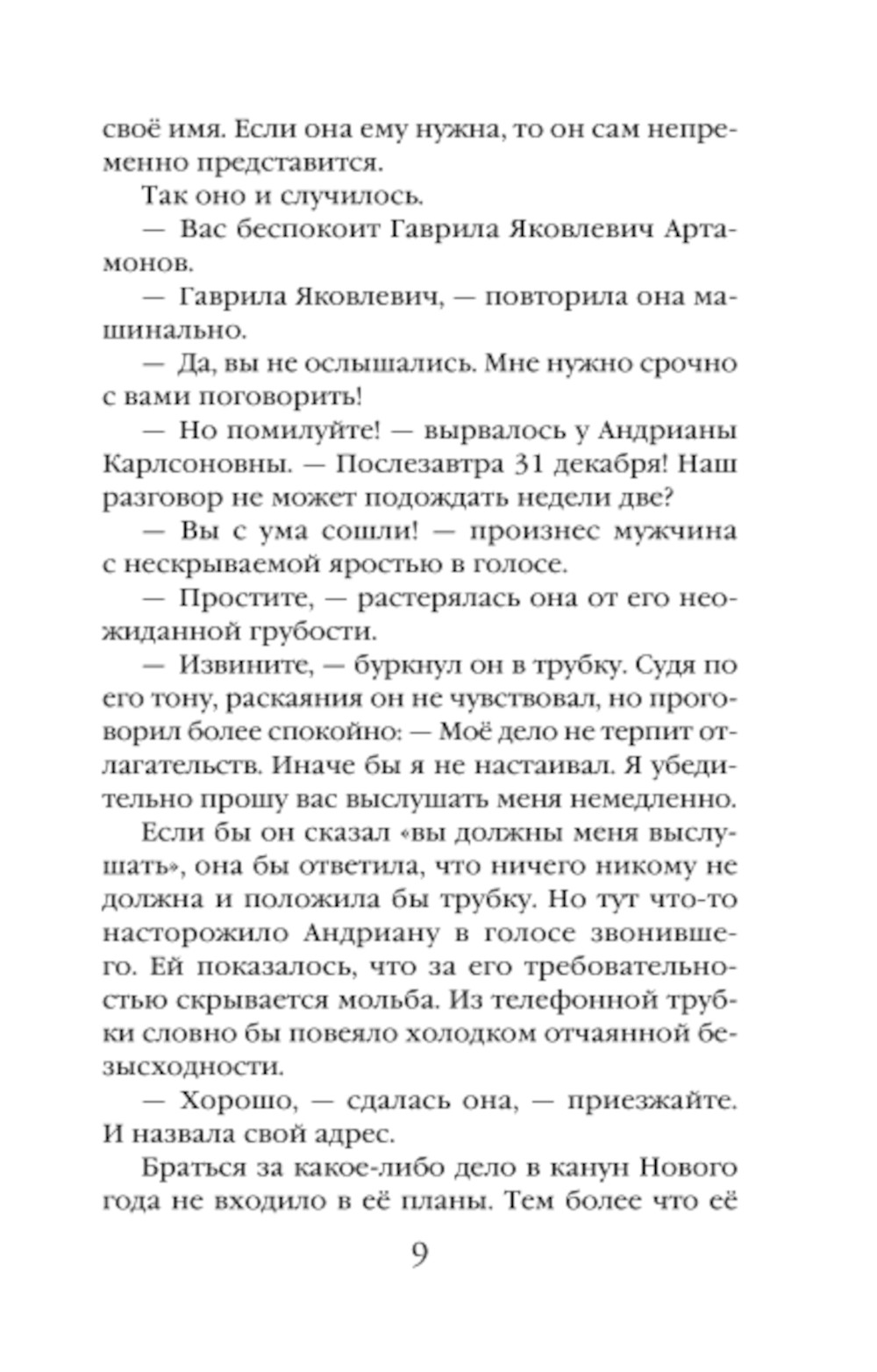Частный детектив Андрианна Карлсоновна не хотела заниматься привередливым клиентом, который мало того, что объявился аккурат перед Новым годом, так еще и совсем не понравился сыщице. Но понять Гаврилу Артамонова можно - в его семье произошла ужасная беда, похитили и убили его ребенка. Теперь обезумевший от горя отец требует от детектива найти безжалостных преступников...| Издательство | Эксмо |