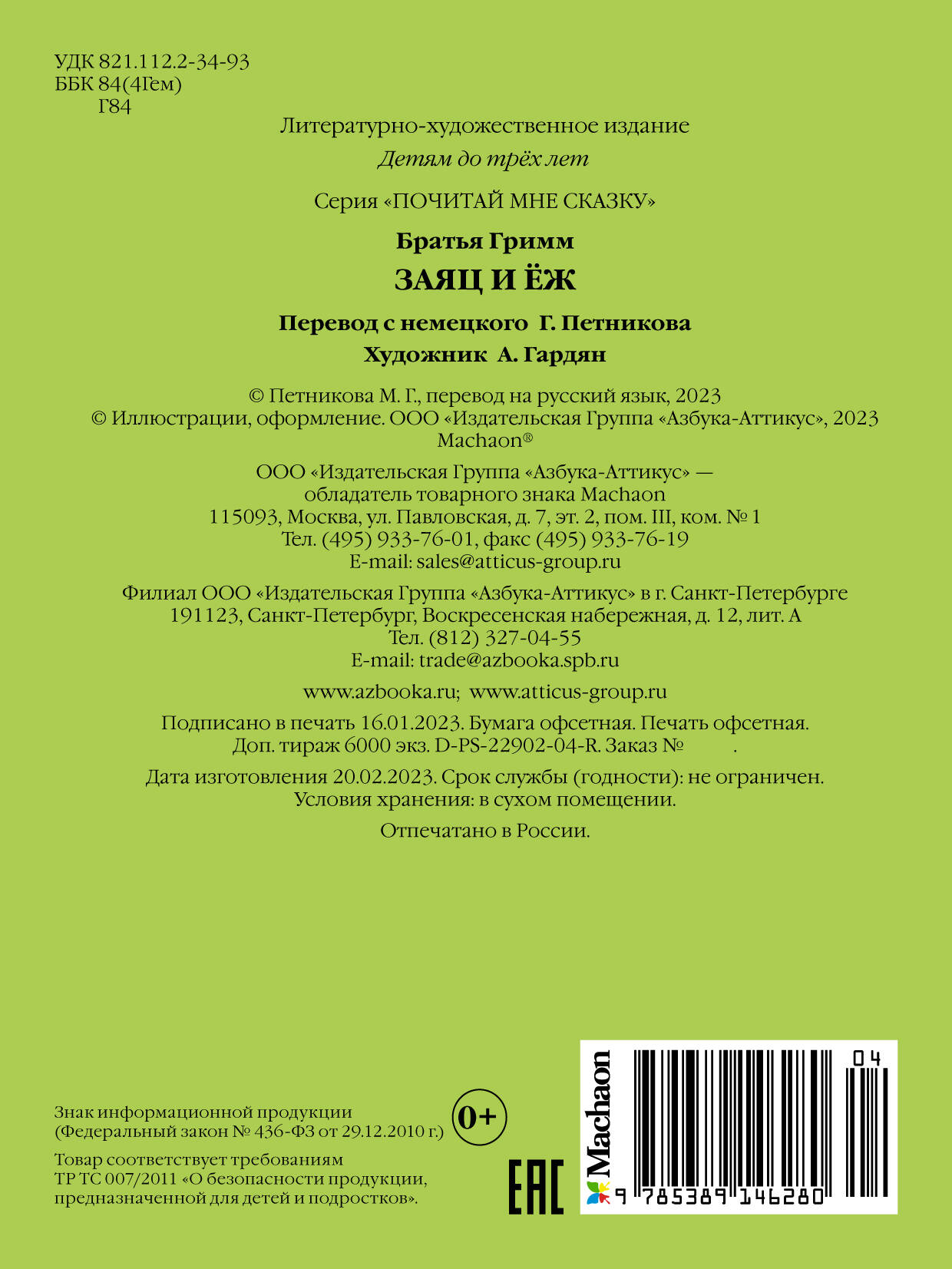 Сказка Братьев Гримм в переводе с немецкого Григория Петникова. Литературно-художественное издание детям до трёх лет.| Издательство | Азбука-Аттикус Издат.группа ООО |