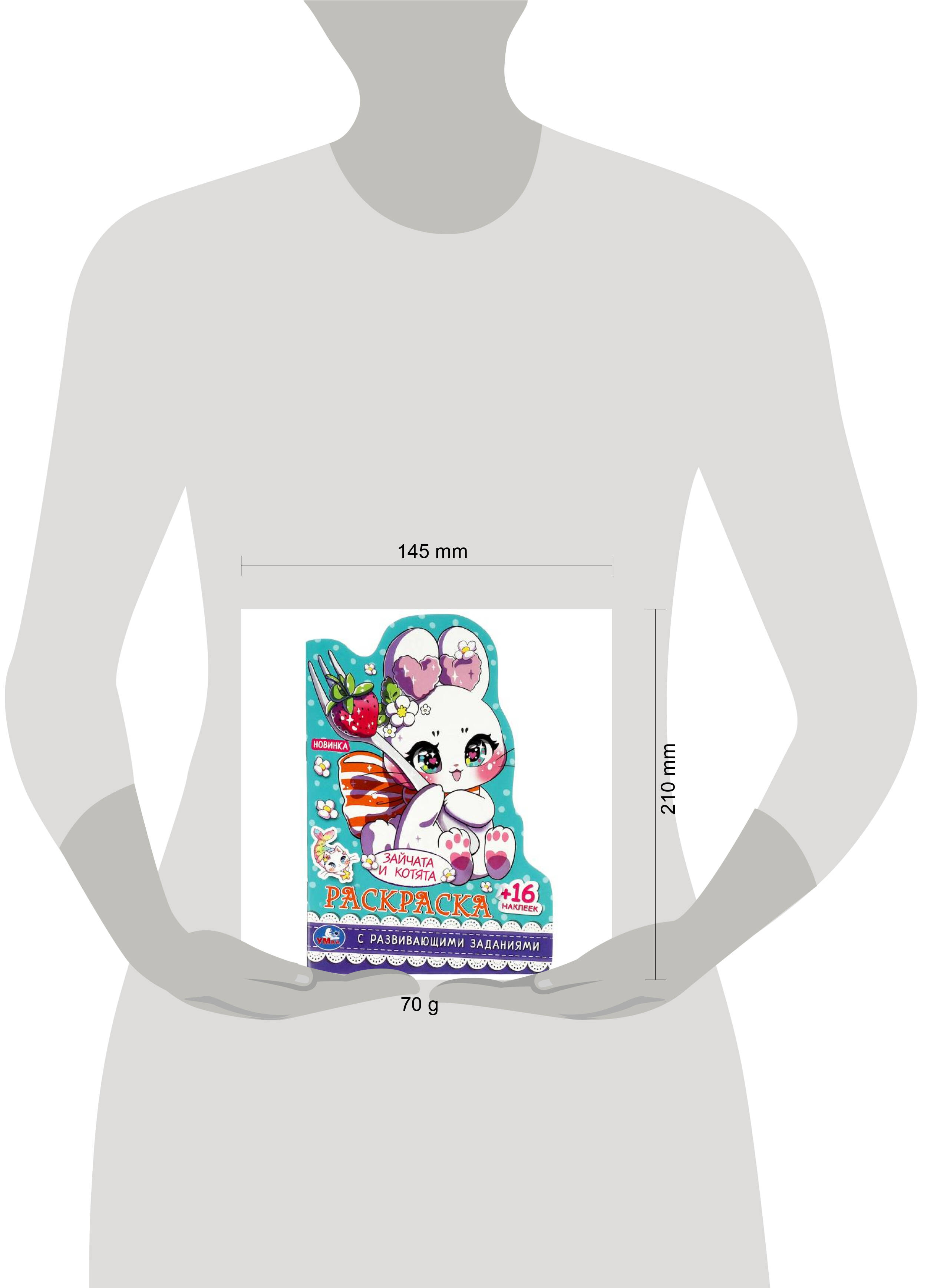Аннотация: Зайчата и котята. Раскраска с развивающими заданиями. 145х210 мм. Скрепка. 16 стр. Умка в кор.50шт