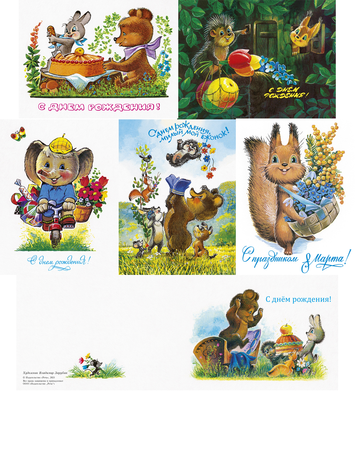 Для того, чтобы сделать другу приятное, необязательно ждать специального повода. Угостить пирогом, подарить букет цветов, сказать ласковое слово или подарить красивую открытку можно в любой день, который от такого сюрприза станет радостнее и теплее. Красивые и добрые открытки без повода придумал и нарисовал художник Владимир Зарубин. В наборе 1 двойная и 5 одинарных открыток.