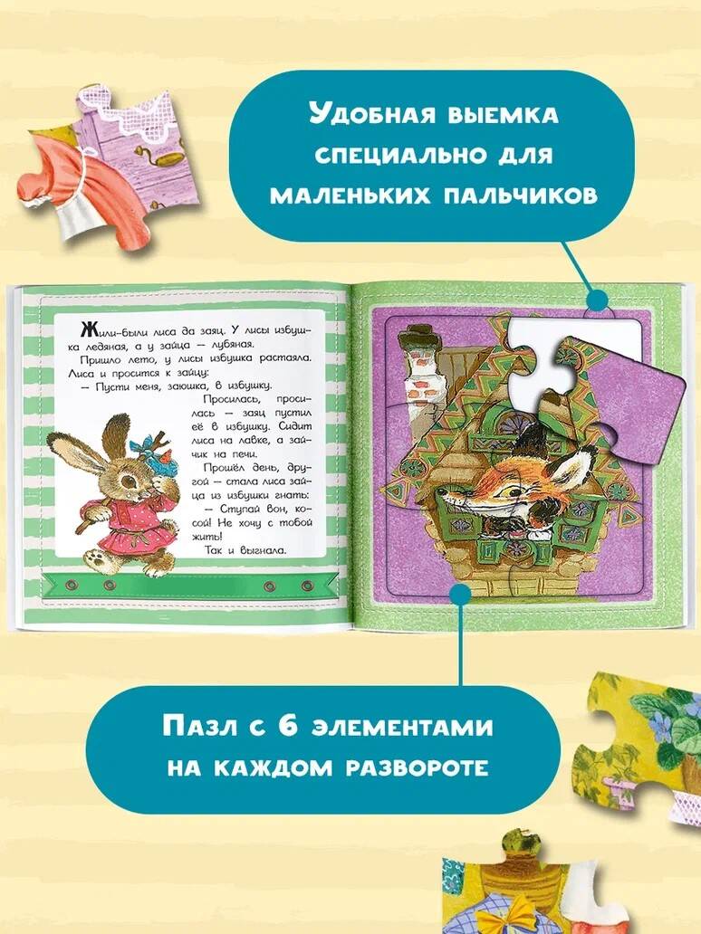 Любимая малышами русская народная сказка в классическом пересказе О.И. Капицы и с яркими иллюстрациями А.М. Савченко - теперь в новом формате! На каждом из шести разворотов малыша ждёт красочный пазл из 6 прочных деталей. Где-то здесь затаился зайка, торжествует хитрая лиса, в испуге убегают волк и медведь, а бесстрашный петушок весело шагает по дорожке. Пока взрослые читают вслух интересную сказку о храбрости и справедливости, кроха будет развивать мелкую моторику, концентрацию внимания и усидчивость. Удобная ручка и пластиковый замочек, прикрепленные к книге, позволят взять её с собой в дорогу, на прогулку или в гости. Читайте любимые сказки и играйте с пользой! Книги серии «Чудо-пазлы с замком и ручкой» - классика для самых маленьких в удобном игровом формате! • Любимые классические стихи и сказки для самых маленьких • Иллюстрации лучших детских художников • Книги, на которых выросло не одно поколение и которые должен прочесть каждый образованный малыш • Крупные развивающие пазлы из плотного картона с выемкой для маленьких пальчиков - на каждом развороте • Прочный пластиковый замочек и ручка - удобно брать с собой в дорогу • Плотная толстенькая обложка с поролоном • Идеальный подарок малышу! • От 6 месяцев и старше| Издательство | АСТ |