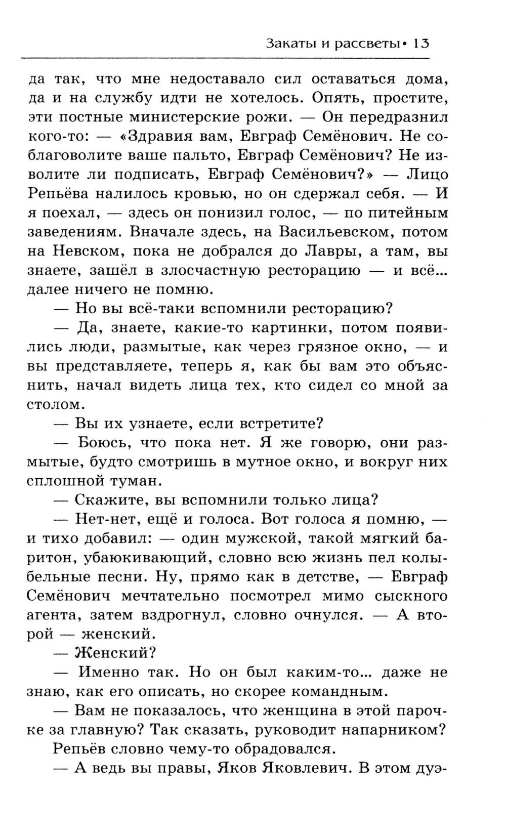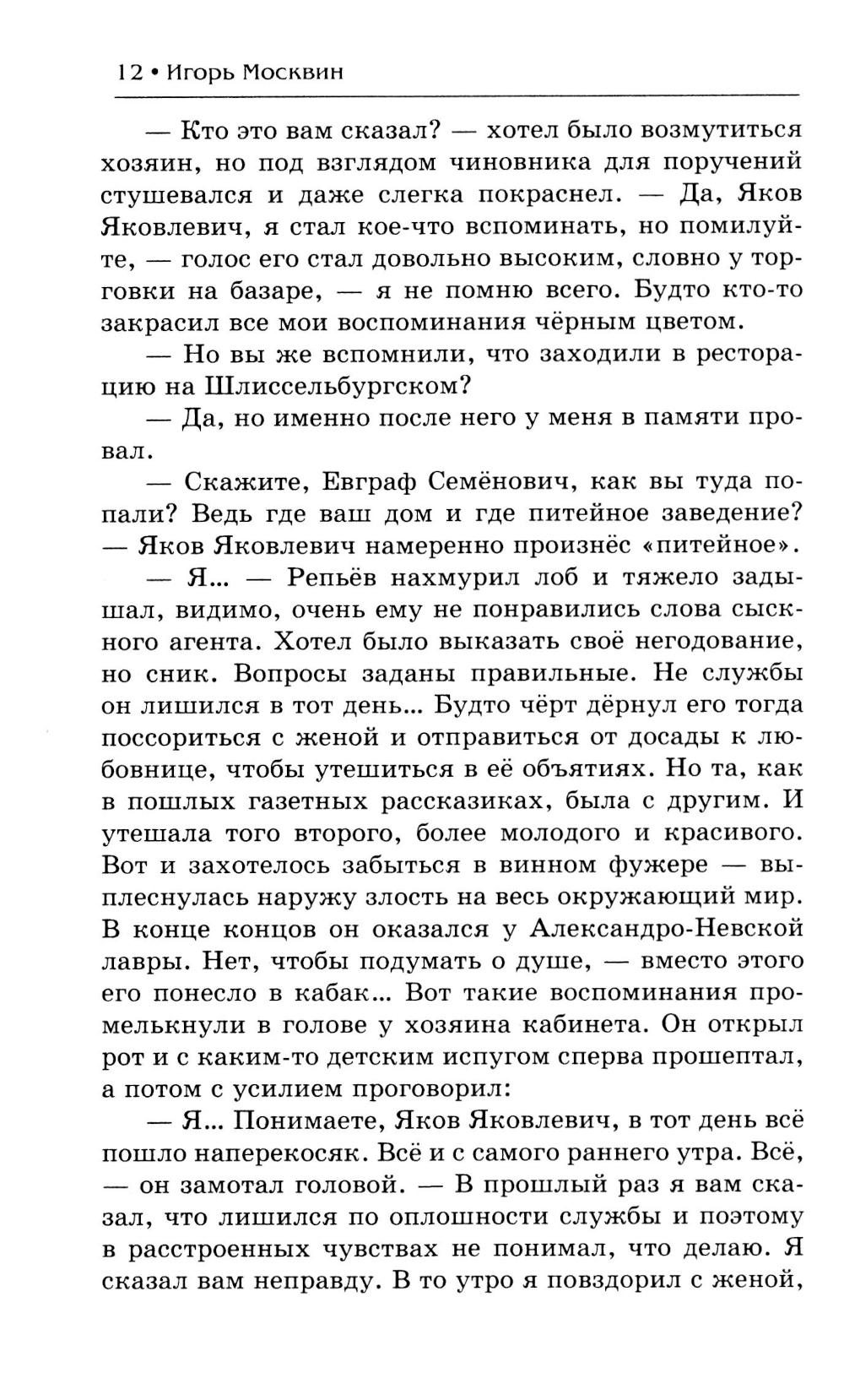 1897 год. Санкт-Петербург. Столица Российской империи - город большой, а потому всегда привлекал бандитов, убийц и воров. Здесь есть чем поживиться, есть где затеряться. Поэтому и полиция не знает cпокойной жизни, каждый день новое происшествие. Убита жена английского подданного, на окраине города найден неопознанный труп со следами удушения, а еще объявилась некая криминальная парочка, которая обирает посетителей трактиров и ресторанов, опаивая их крайне опасной химией. И вот что любопытно: между этими, на первый взгляд, совершенно разными преступлениями начинает проявляться странная взаимосвязь. Но может ли вообще быть такое? Этот клубок размотать непросто, но размотать его необходимо. За дело берётся коллежский советник и ныне начальник сыскной полиции Леонид Алексеевич Шереметевский.| Издательство | Крылов |