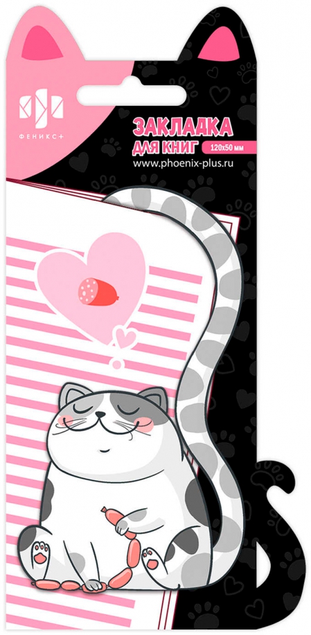 Закладка для книг фигурная арт. 65147 / 160 КОТ (1 шт. в наборе, размер 67х120 мм, материал: мелованный картон; цвет: белый, оранжевый, серый, декор: матовая ламинация, полноцветный дизайн, фигурная вырубка, индивидуальная упаковка: подложка из мелованного картона + ПЭТ-пакет с европодвесом)