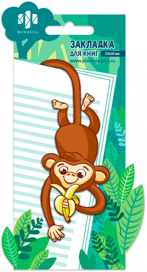 Закладка для книг фигурная арт. 65148 / 160 ОБЕЗЬЯНА (1 шт. в наборе, размер 50х120 мм, материал: мелованный картон; цвет: бежевый, жёлтый, коричневый, декор: матовая ламинация, полноцветный дизайн, фигурная вырубка, индивидуальная упаковка: подложка из мелованного картона + ПЭТ-пакет с европодвесом)
