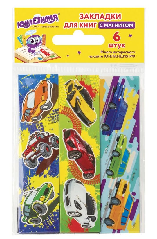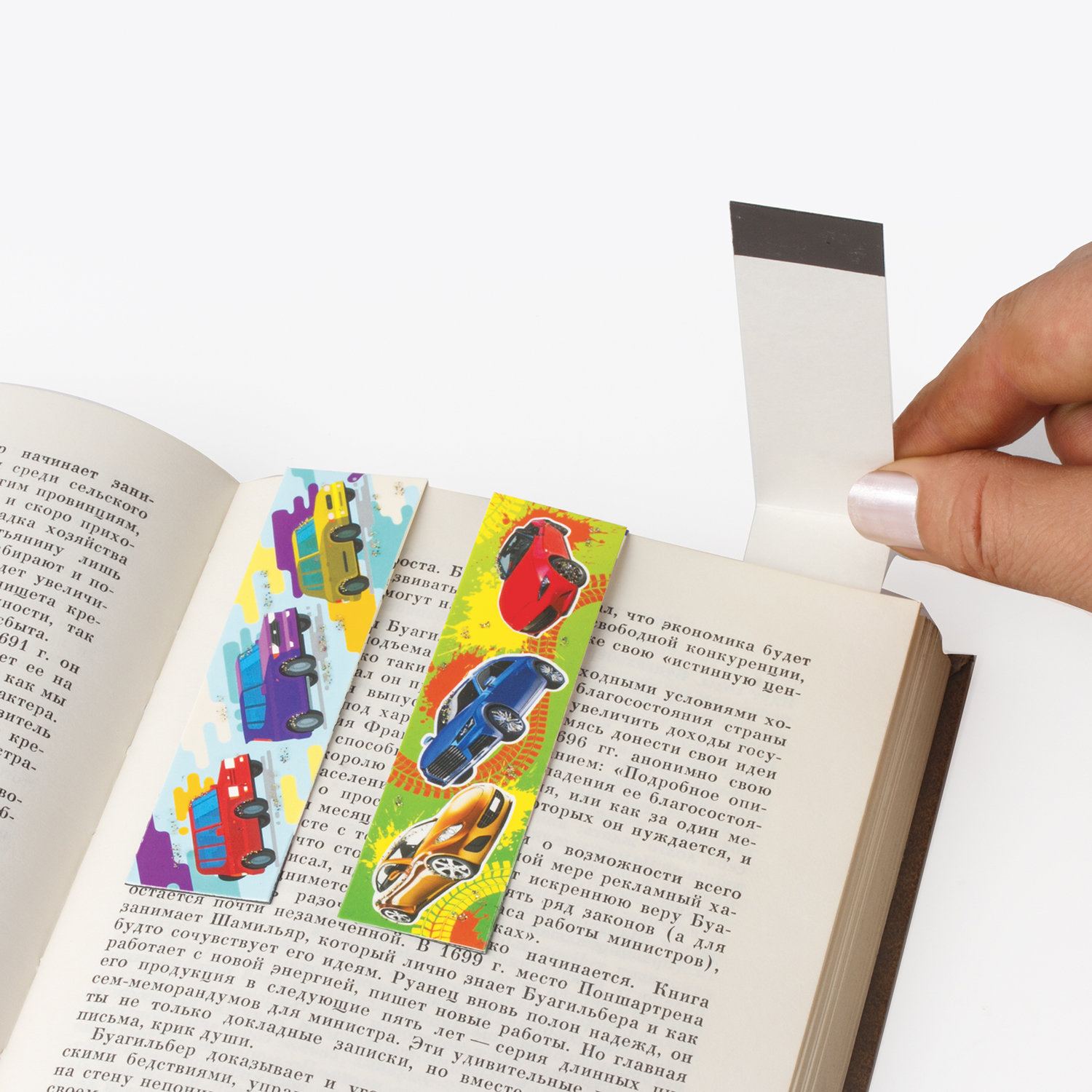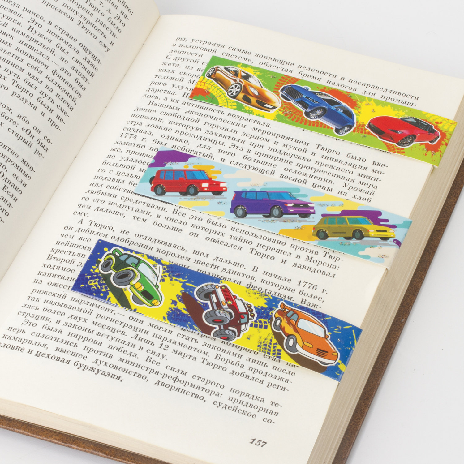 Закладки для книг с магнитом Машины, 6 штук, 25x196 мм, блестки