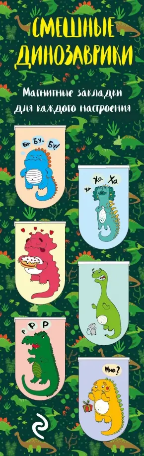 Аннотация: Закладки магнитные для книг "Смешные динозаврики" (6 штук)