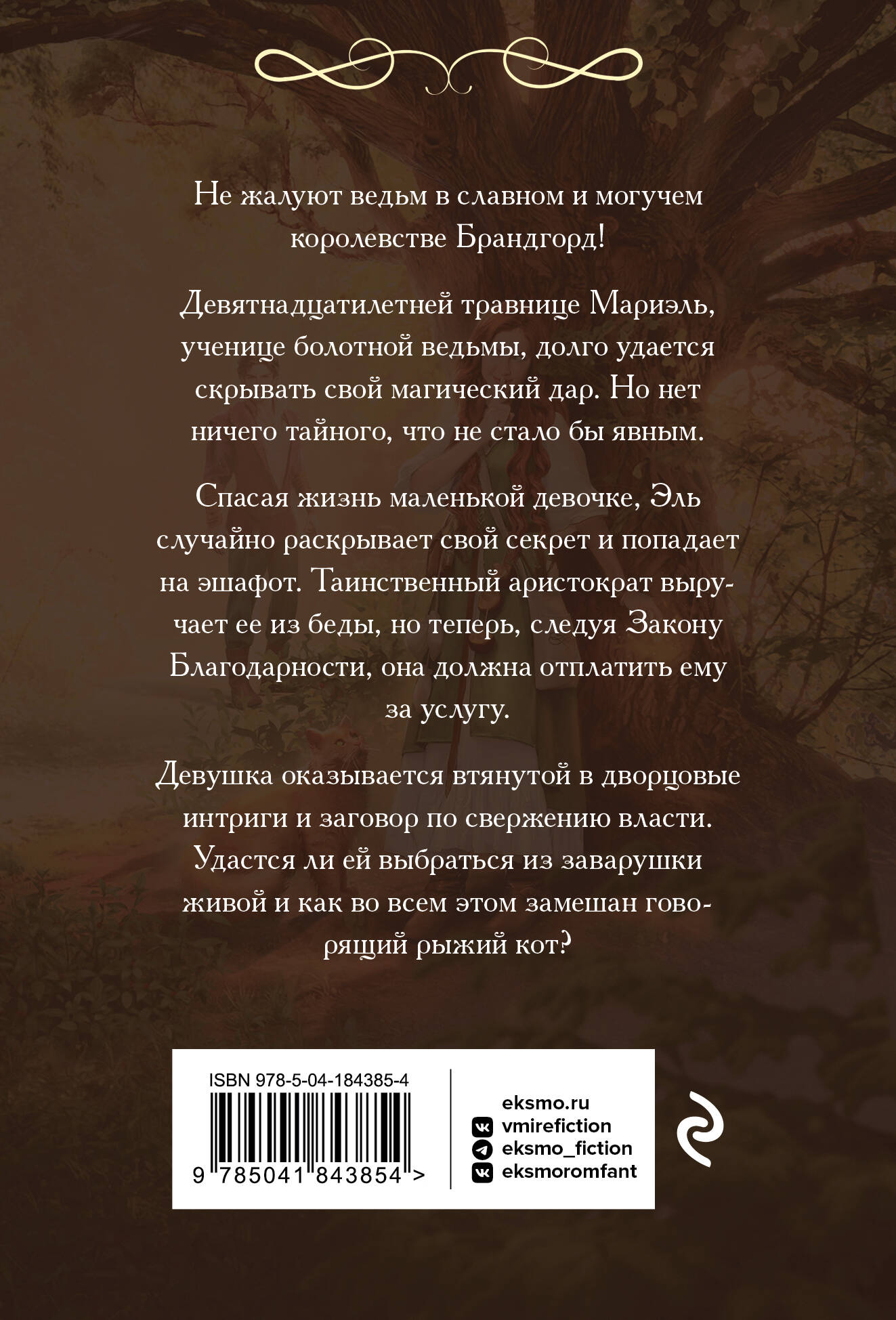 Не жалуют ведьм в славном и могучем королевстве Брандгорд! Девятнадцатилетней травнице Мариэль, ученице болотной ведьмы, долго удаётся скрывать свой магический дар. Но нет ничего тайного, что не стало бы явным. Спасая жизнь маленькой девочке, Эль случайно раскрывает свой секрет и попадает на эшафот. Таинственный аристократ выручает её из беды, но теперь, следуя Закону Благодарности, она должна отплатить ему за услугу. Девушка оказывается втянутой в дворцовые интриги и заговор по свержению власти. Удастся ли ей выбраться из заварушки живой и как во всём этом замешан говорящий рыжий кот? 1. Переиздание увлекательного цикла «Закон Благодарности» о приключениях травницы Мариэль. 2. Мудрая и увлекательная история! 3. Трепетная любовная линия. 4. Продуманный авторский мир. 5. Удобный карманный формат покета - влезет в любую сумку!| Издательство | ООО "Издательство "Эксмо" |