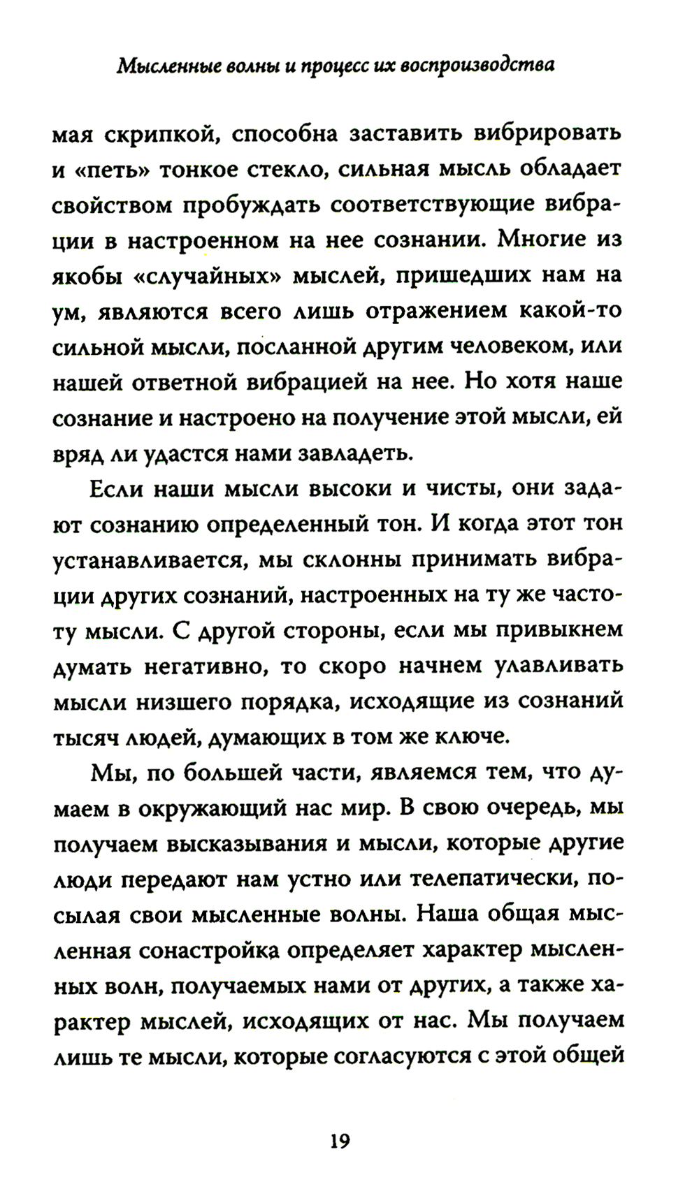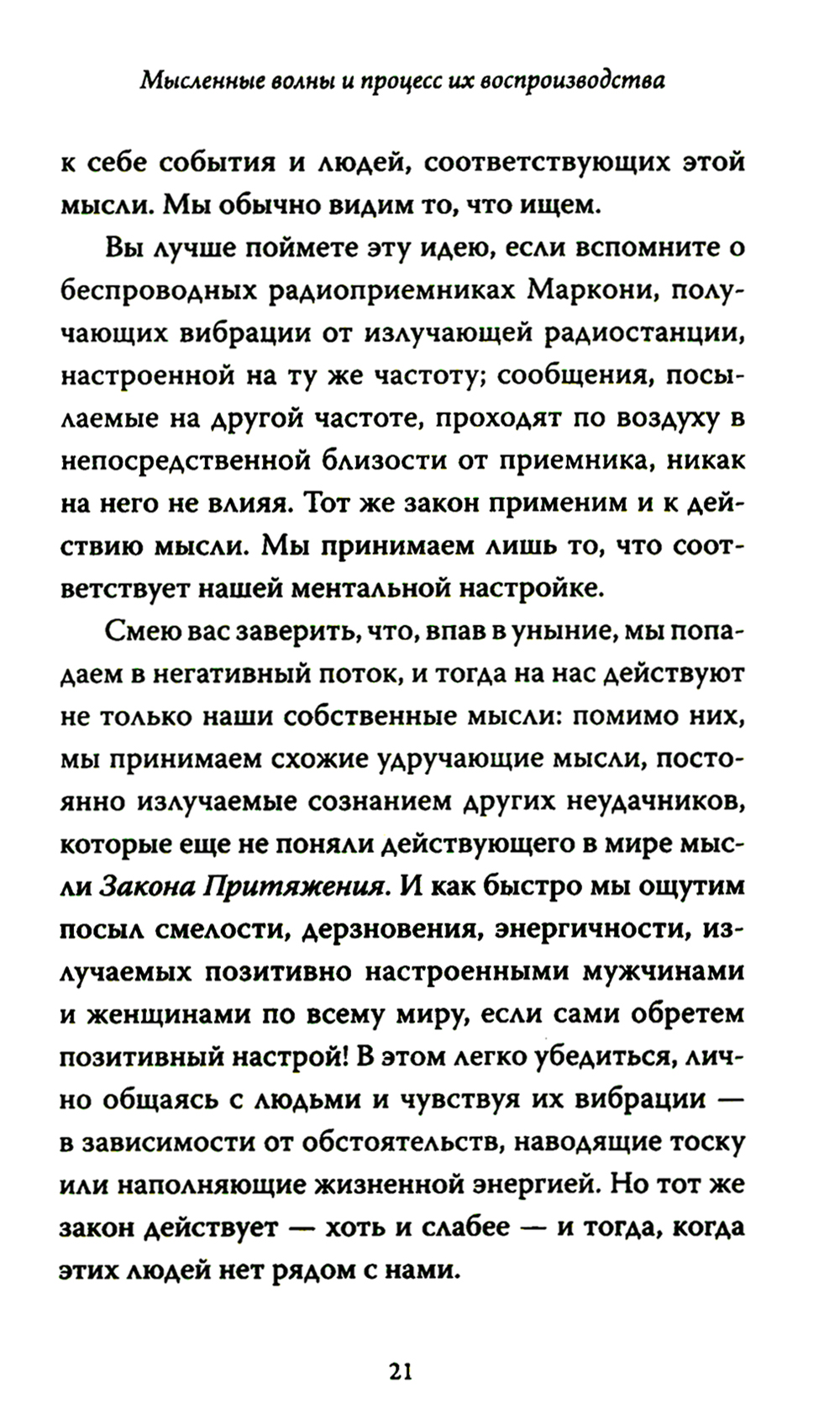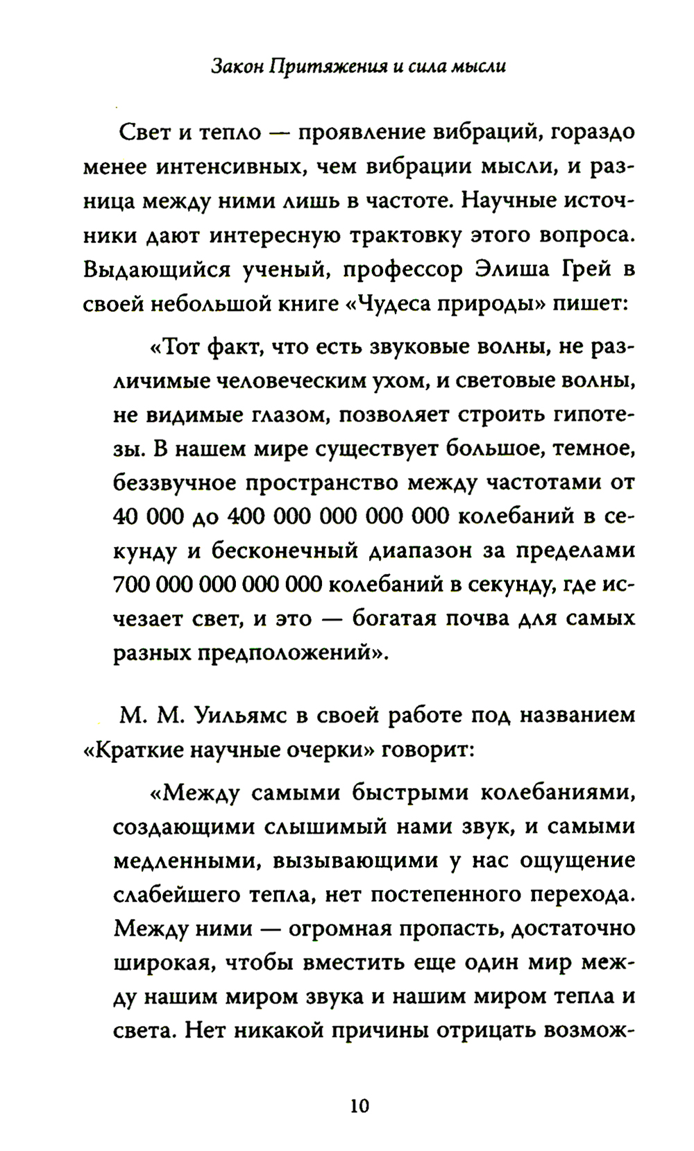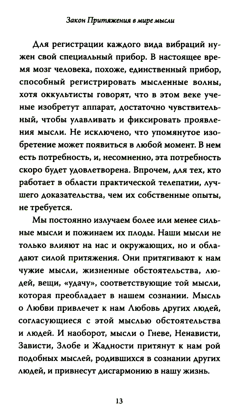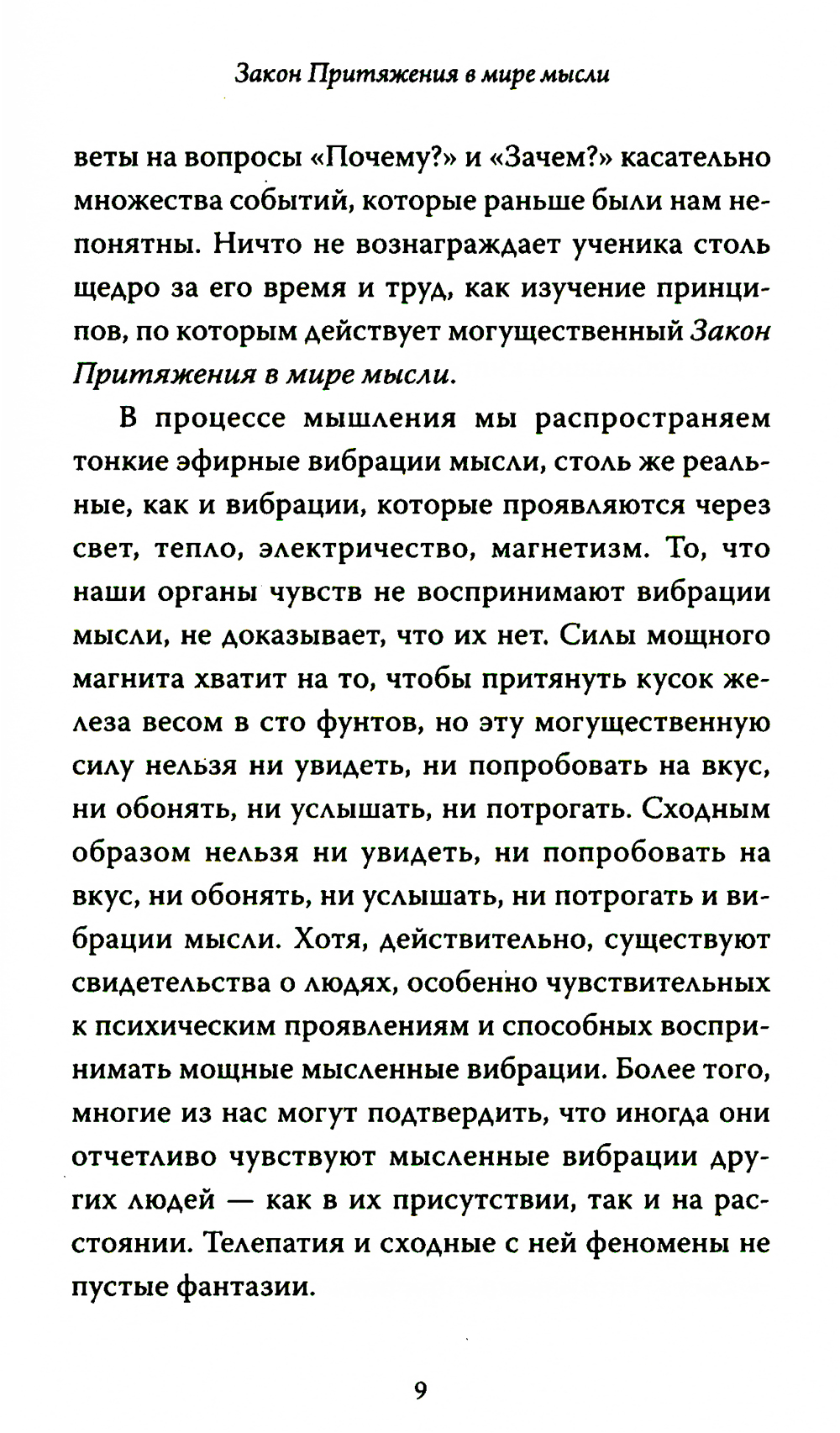 Нам хорошо известен закон гравитации, но мы нередко игнорируем другое проявление этого закона - Закон притяжения в мире мысли. Согласно этому закону то, него мы желаем или боимся, притягивается к нам. Когда нам становится ясно, что Мысль есть проявление энергии и что она, как магнит, обладает силой притяжения, мы начинаем находить ответы на вопросы «почему?» и «зачем?» касательно множества событий, которые раньше были нам непонятны. Ничто не вознаграждает человека столь щедро за его время и труд, как изучение принципов, по которым действует могущественный Закон притяжения в мире мысли.| Издательство | София |