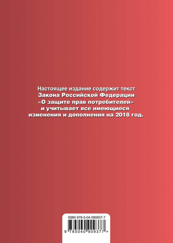 Аннотация: Закон Российской Федерации "О защите прав потребителей" с самыми последними изменениями на 2018 год