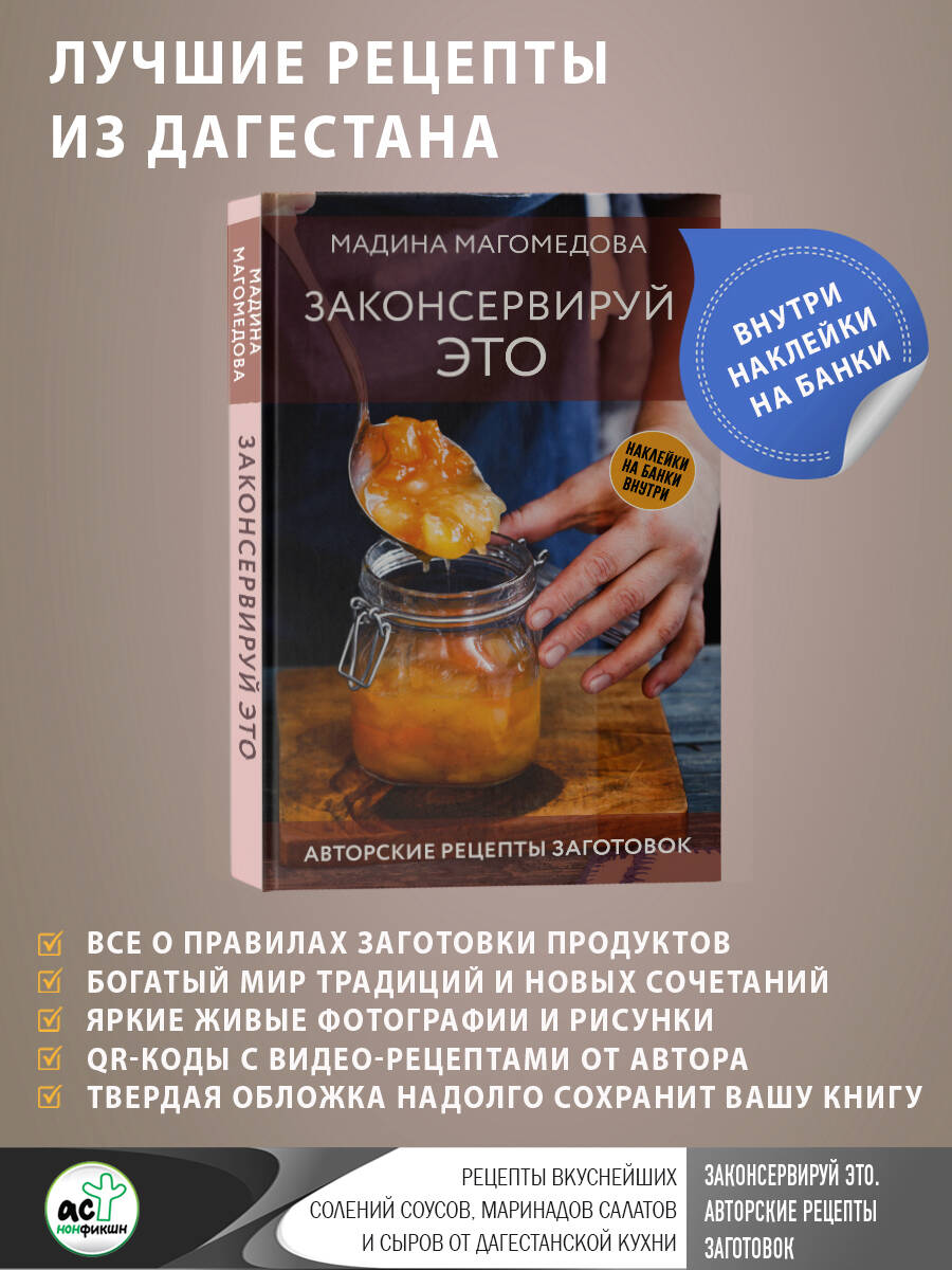 Мир кулинарных традиций Кто, как не кавказцы знают толк в консервировании? У кого любовь к острым блюдам заложена буквально в генах? Кто может при помощи специй превратить рядовое блюдо в настоящий шедевр?Конечно, горцы! Фуд-блогер из республики Дагестан Мадина Мамедова доказывает это в своей книге рецептов «Законсервируй это. Авторские рецепты заготовок». Кулинарная книга от Мадины Магомедовой -- это энциклопедия рецептов на каждый день с кавказским колоритом. Побалуйте себя и близких популярными в Дагестане национальными рецептами пикули по-дагестански, варенья из грецких орехов и инжира, нескольких видов аджики, сычужного сыра и даже рецептом натуральной питательной и тонизирующей маски для лица. Мадина Магомедова делится рецептами консервации малосольных огурчиков на минеральной воде, пряных помидоров, разнообразных соусов, салатов и закусок. По советам из книги по домоводству вы заготовите на зиму не только соленья, маринады, но и такие лакомства как компоты, варенья, желе, пастилу, чурчхеллу и другие десерты. Книга с красочной обложкой в твердом переплете, комплект наклеек для удобной маркировки тары и проверенные временем рецепты, превратят процесс заготовок на зиму в пространство для творчества.| Издательство | Издательство "АСТ" |