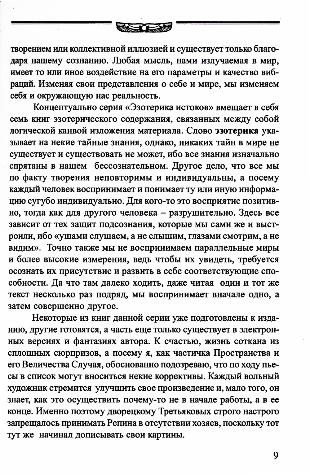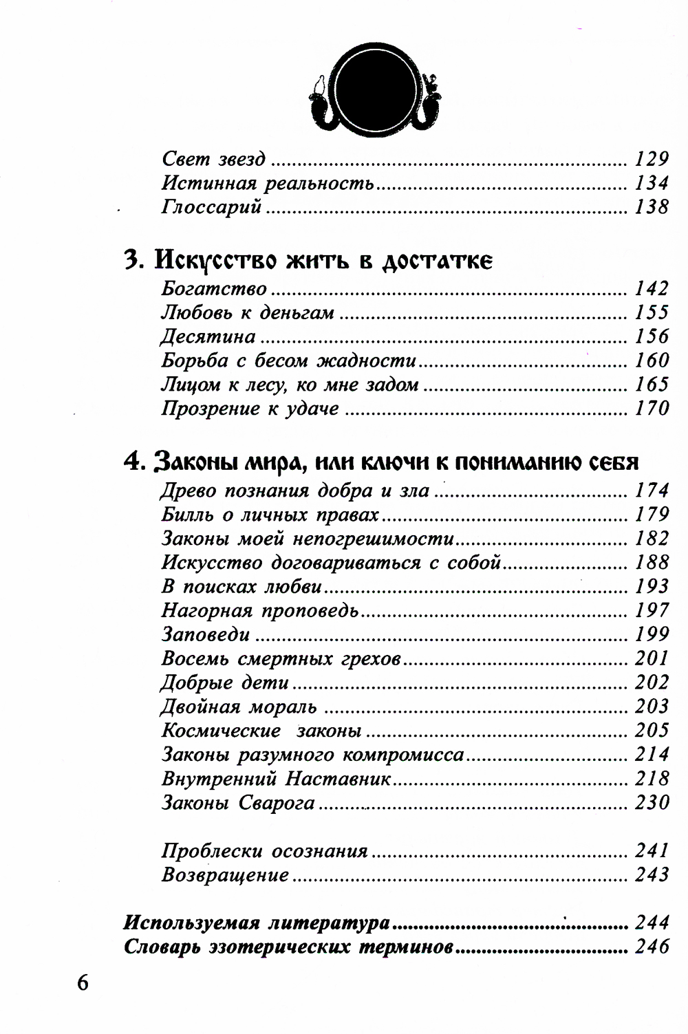 Книга рассматривает концепцию поиска своего пути, ведущего к раскрытию божественной - духовной - природы человека и достижению им полной самореализации. В книге показаны основные ошибки ученика на пути самопознания, рассматриваются примеры как их избежать и найти истинное учение и учителя. Автор подсказывает, как выбраться из капканов ложных доктрин и суеверий, приводит техники и практики достижения внутренней гармонии и искусства жить в достатке, а также обращается к космическим законам, на которых базируется бесконечный мир бесконечного Пространства.