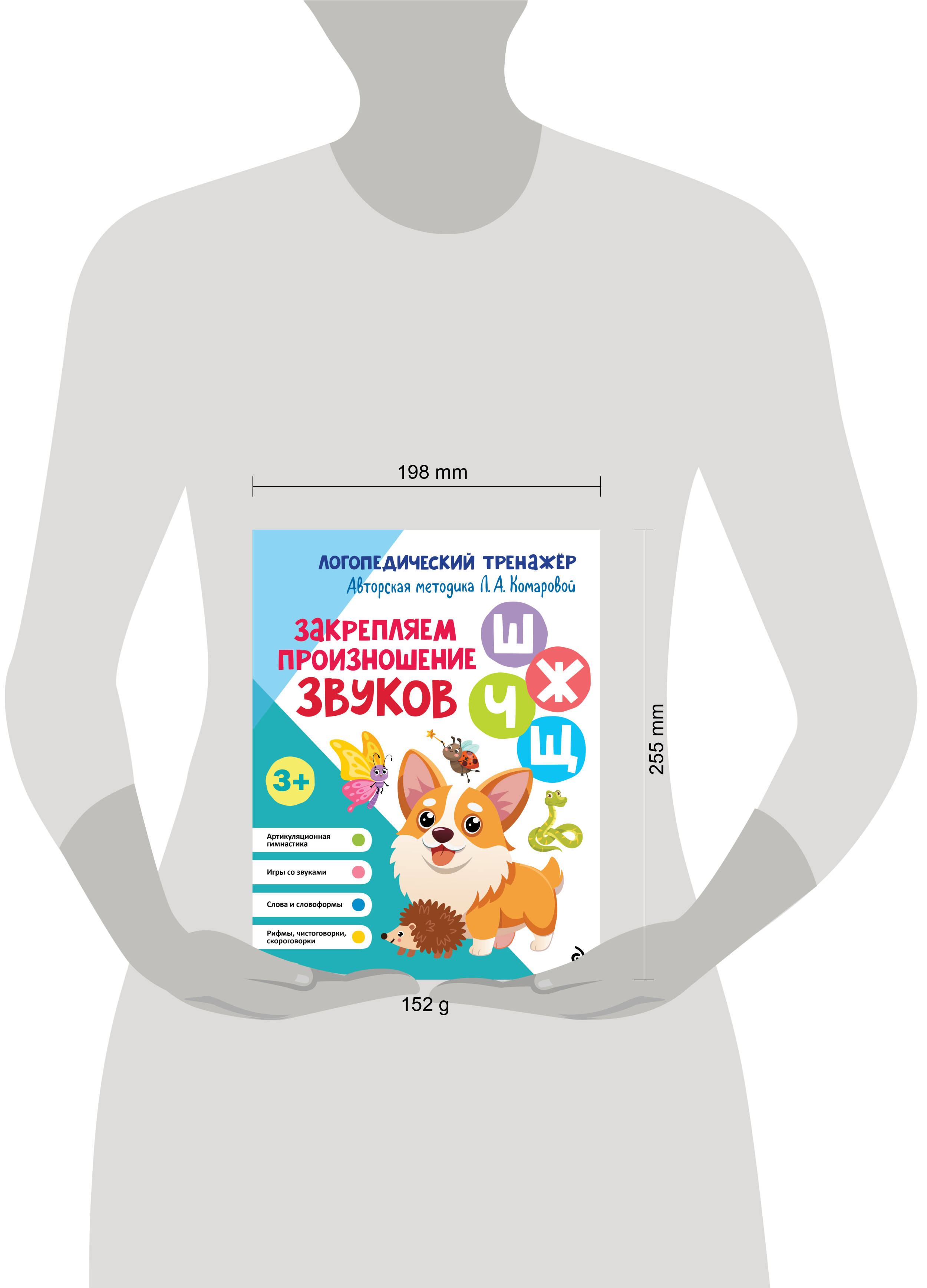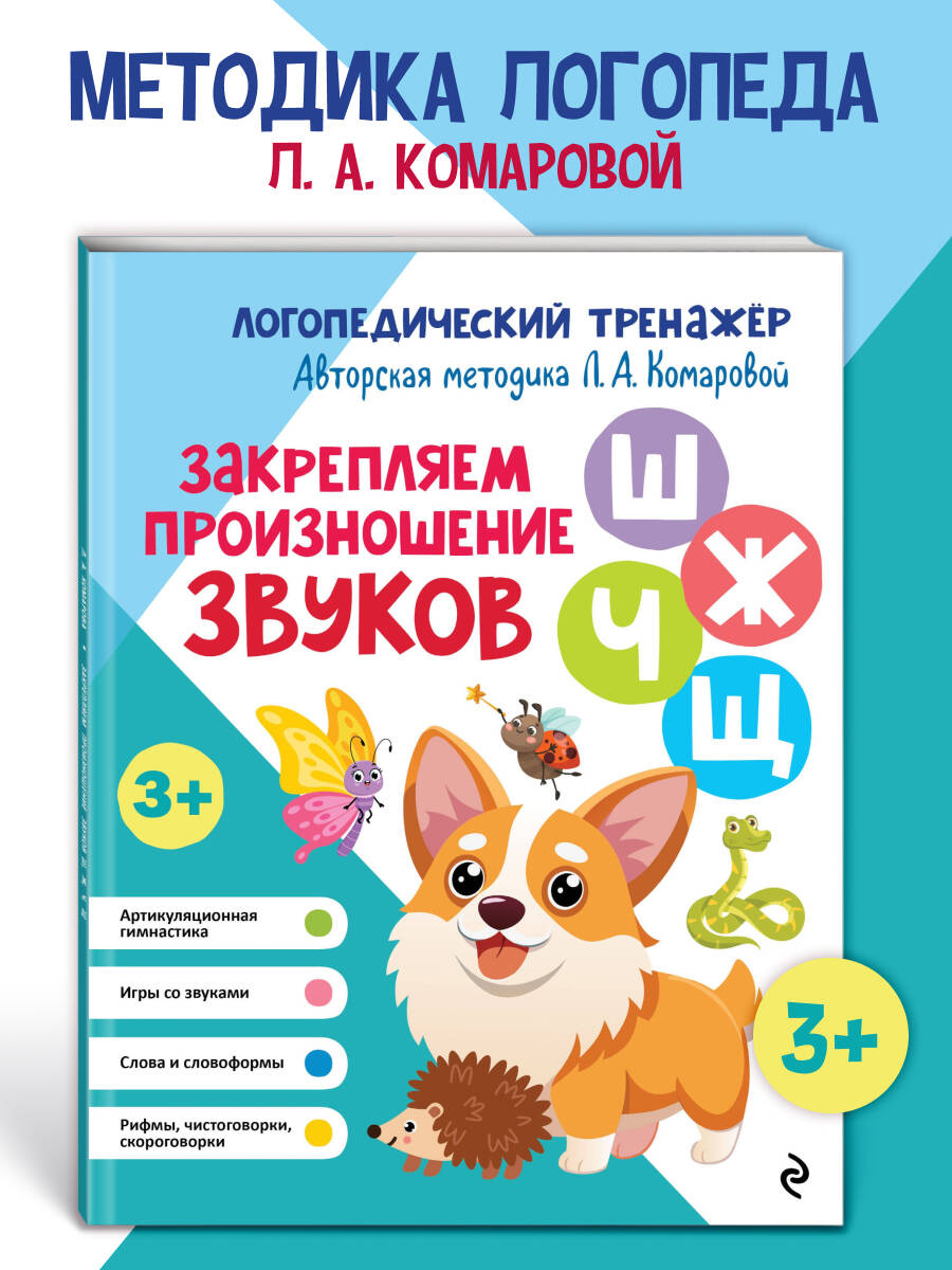 В книге представлена система упражнений для автоматизации звуков [ш], [ж], [ч] и [щ] в речи дошкольника. В норме шипящие звуки начинают правильно звучать в речи ребёнка в 4-5 лет. Если этого не происходит, необходима консультация логопеда, чтобы он помог дошкольнику добиться правильного произношения. И только потом можно приступать к самостоятельным занятиям дома. Книга входит в серию пособий «Логопедический тренажёр», предназначенных для педагогов и родителей, чтобы самостоятельно работать над речью ребёнка. Яркие иллюстрации и увлекательные задания помогут превратить монотонную и однообразную работу по закреплению в речи звуков [ш], [ж], [ч] и [щ] в увлекательную игру. Каждое упражнение сопровождается подробными инструкциями для взрослых. Автор методики Лариса Анатольевна Комарова - педагог-логопед с многолетним опытом работы. Занимаясь по её книгам, несколько поколений детей стали обладателями грамотной и красивой речи. Её методику используют педагоги различных логопедических центров. Книга Издательства «ЭКСМО» поможет родителям, воспитателям детских садов и логопедам сделать речь ребёнка чёткой, красивой и выразительной.| Издательство | ООО "Издательство "Эксмо" |