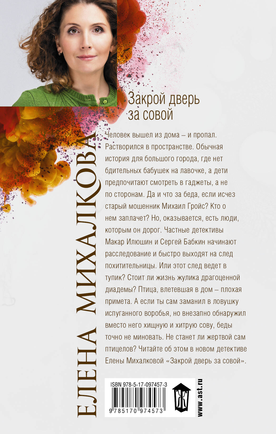 «Закрой дверь за совой» - новый роман Елены Михалковой, автора популярных детективных романов, разошедшихся общим тиражом в 5 миллионов экземпляров. Героями книги снова стали частные сыщики Макар Илюшин и Сергей Бабкин, которые, как говорит сама Михалкова, имеют в качестве прототипов совершенно реальных людей - двух ее знакомых, занимающихся оперативной работой. Да и сама Елена Михалкова, получив юридическое образование, работала в милиции. Именно поэтому она так прекрасно разбирается в тонкостях криминального мира. При этом Макар Илюшин - циничный, но обаятельный наблюдатель, полная противоположность идеального героя (по словам самого автора) уже давно завоевал безусловную любовь многочисленных поклонников остросюжетной прозы Михалковой. В новом романе серии Макару и Сергею в очередной раз придется непросто: перед ними встанет задача отыскать в многомиллионной Москве 74-летнего Михаила Гройса, буквально растворившегося в воздухе где-то на полпути от сквера до кофейни, в которой он имел обыкновение пить кофе… Подобное исчезновение могло бы выглядеть крайне банальным, да только Гройс - не обычный выживший из ума старичок, забывший дорогу домой, а профессиональный мошенник, сохранивший ясность ума и отличную физическую форму. И чем глубже детективы погружаются в его историю, тем яснее становится, что за исчезновением Гройса кроется настоящее преступление…| Издательство | Издательство "АСТ" |