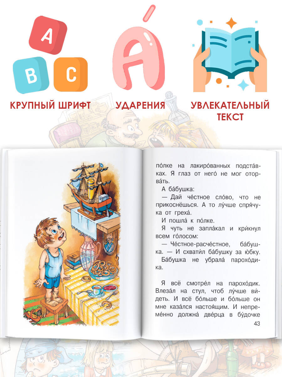 Книги серии «Читаем сами без мамы» - это уникальное собрание золотого фонда отечественной литературы! Сказки, стихи рассказы с красочными иллюстрациями понравятся каждому малышу! Все произведения серии входят в обязательную программу по чтению, а крупный шрифт и ударения помогут ребёнку самостоятельно познакомиться с шедеврами детской мировой литературы. В этой книге юные читатели познакомятся с трогательными и поучительными историями Б. Житкова. Читайте с пользой и удовольствием!