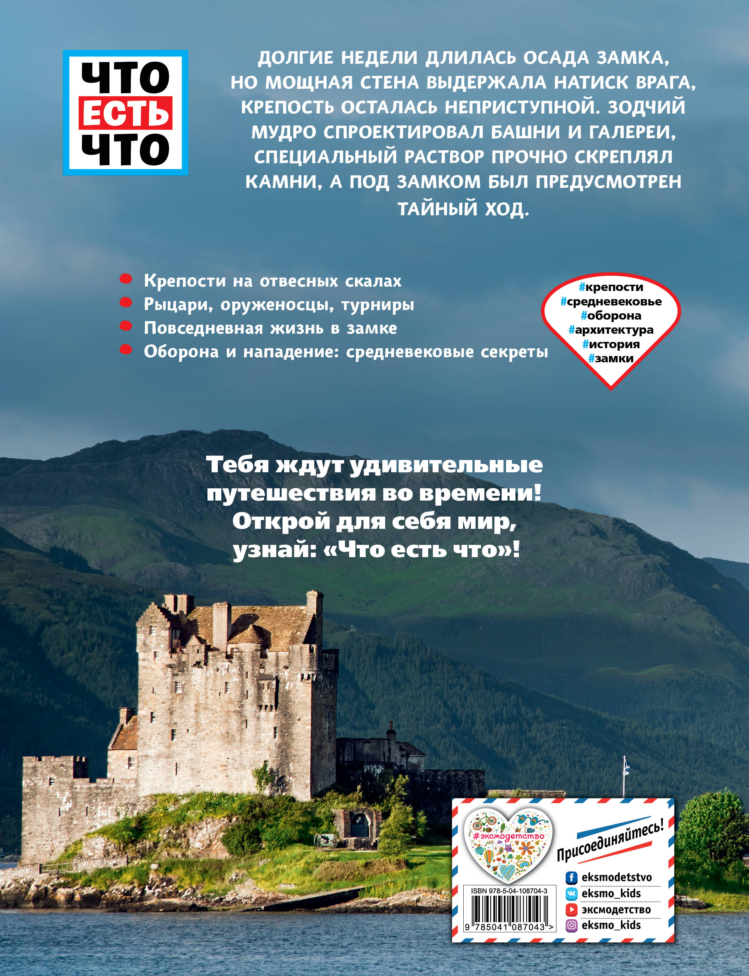С тех пор как на земле появились люди, они постоянно вели войны, и им было необходимо защищаться от врагов. Для того чтобы остановить нападающих, наши предки окружали свои поселения защитными стенами. Так появились замки, которые до сих пор удивляют и восхищают нас своими инженерными решениями и красотой. • Крепости на отвесных скалах. • Рыцари, оруженосцы, турниры. • Повседневная жизнь в замке. • Оборона и нападение: средневековые секреты. Интересная подача материала, чёткая структура, подходящий шрифт, объяснение сложных тем через игровые элементы, визуальные схемы, иллюстрации. Многочисленные факты, которые не сливаются в единый непонятный объем «ненужных знаний», а выстраиваются в головах учеников стройно и логично.| Издательство | ООО "Издательство "Эксмо" |