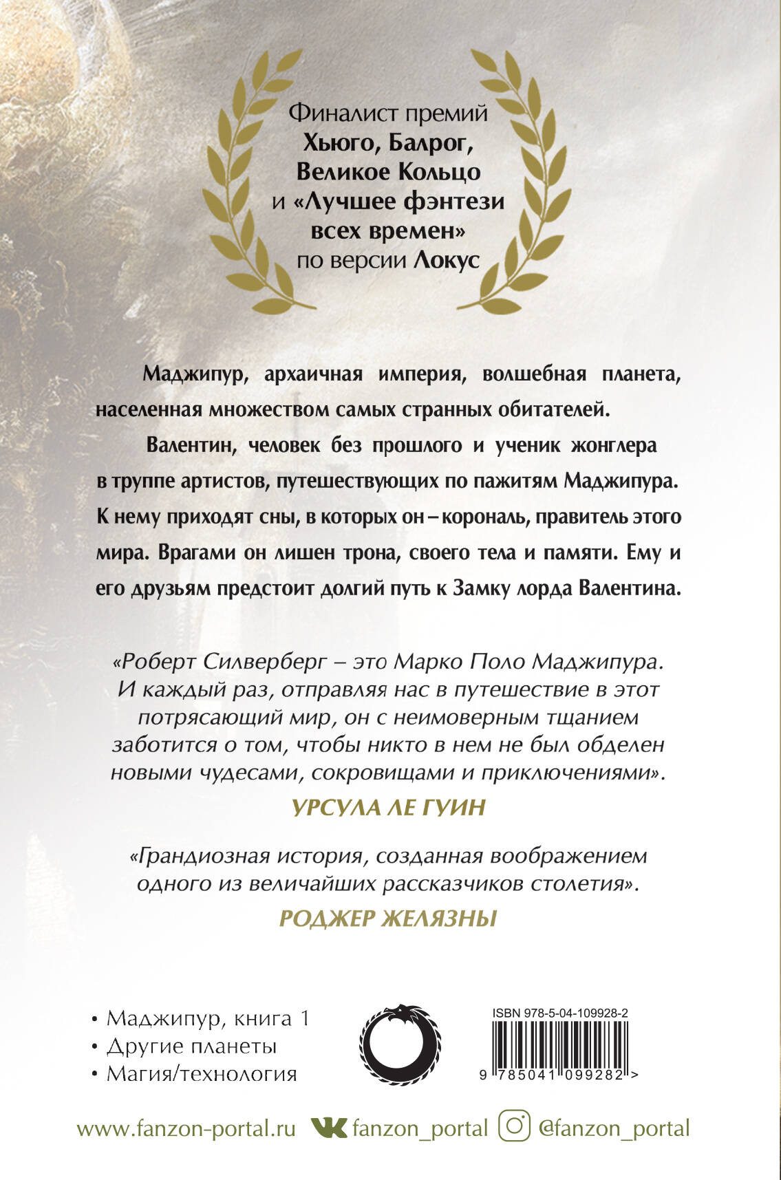 Роман «Замок лорда Валентина» открывает культовую трилогию «Маджипур» всемирно известного фантаста Роберта Сильверберга. Мир планеты Маджипур, где магия мирно уживается с наукой, столь своеобразен и правдоподобен, что после выхода в свет первой книги трилогии критики сравнивали ее с «Дюной» и «Властелином колец». Маджипурский цикл по праву занимает почетное место на золотой полке фантастики.| Издательство | ООО "Издательство "Эксмо" |