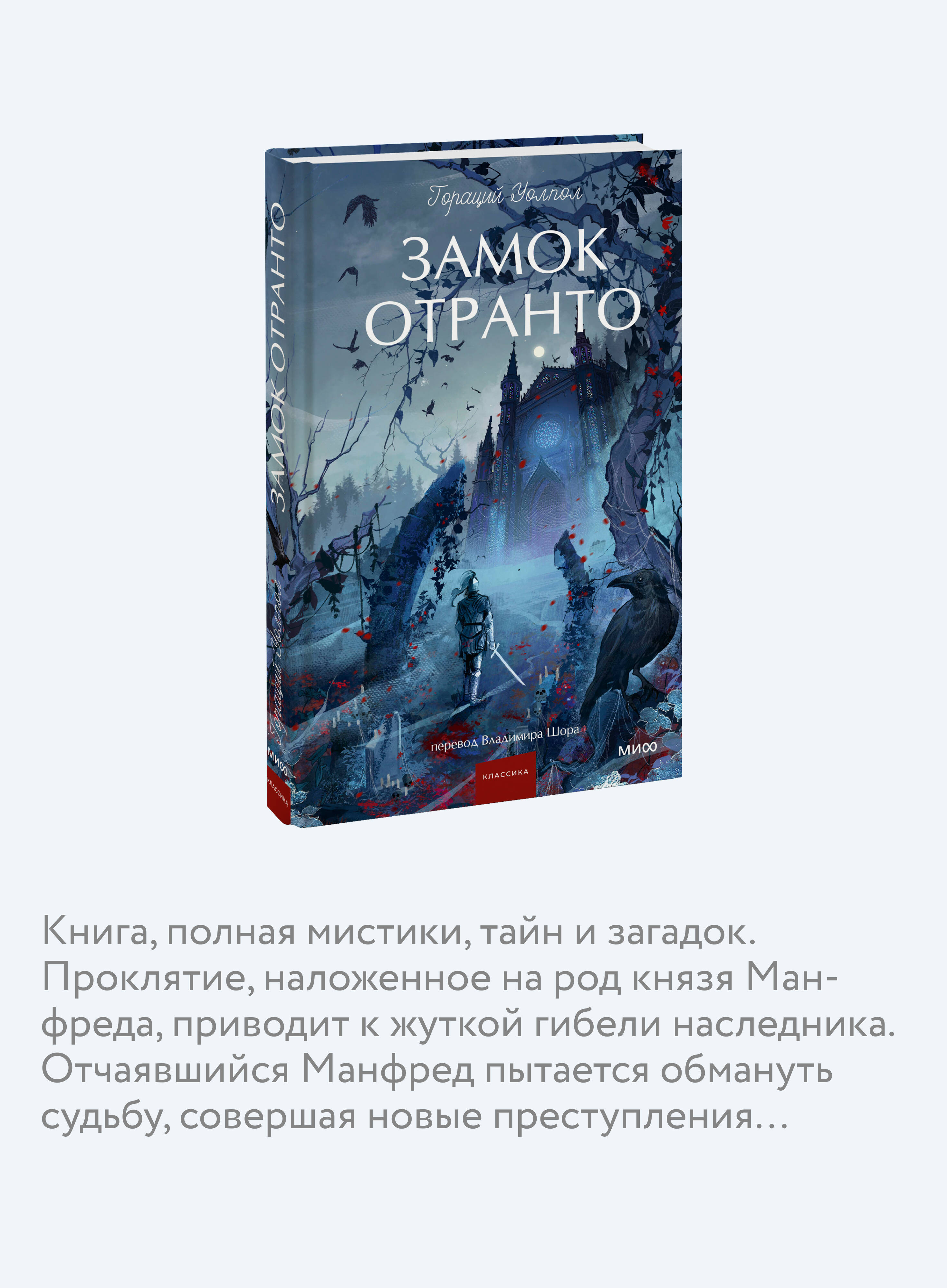 История о зловещем пророчестве и борьбе за власть в древнем замке Классика в оформлении RACCUN Книга считается первым готическим романом, заложившим основы жанра| Издательство | МИФ ООО |