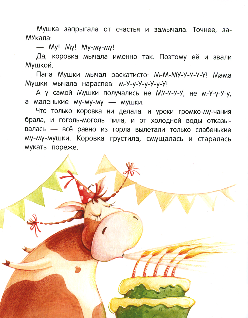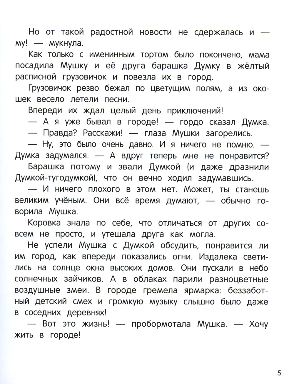 Коровке Мушке исполнилось 5 лет! Её самое заветное желание - стать совсем взрослой и мычать громче мамы, громче папы, громче самой громкой коровы в деревне! Но Мушке удаётся только му-му-мукать. И это её сильно расстраивает. Одна радость: мама везёт Мушку с её другом барашком Думкой на городскую ярмарку кататься на каруселях! Но кто бы знал, что в городе друзей поджидает столько опасностей и приключений! Благодаря им друзья поймут, нужно ли для исполнения заветной мечты волшебство или достаточно собственного сильного желания.| Издательство | Феникс |