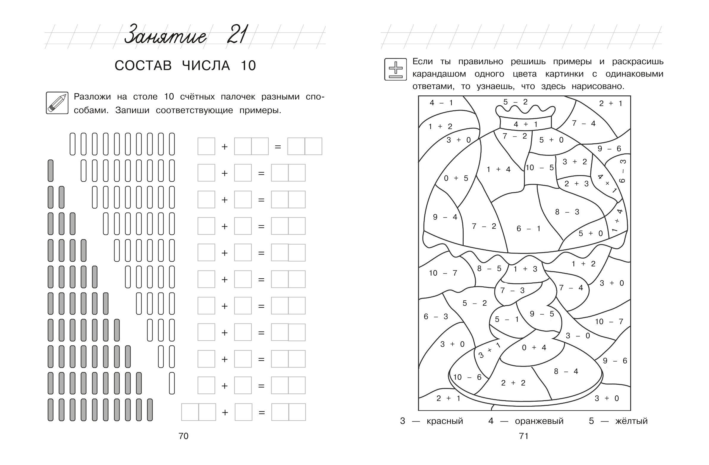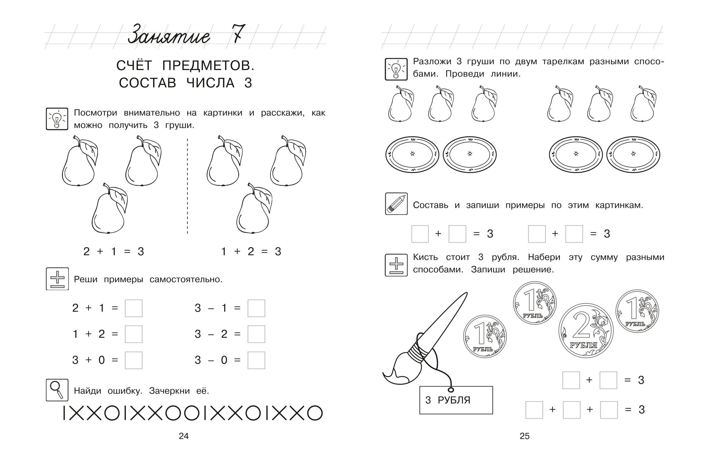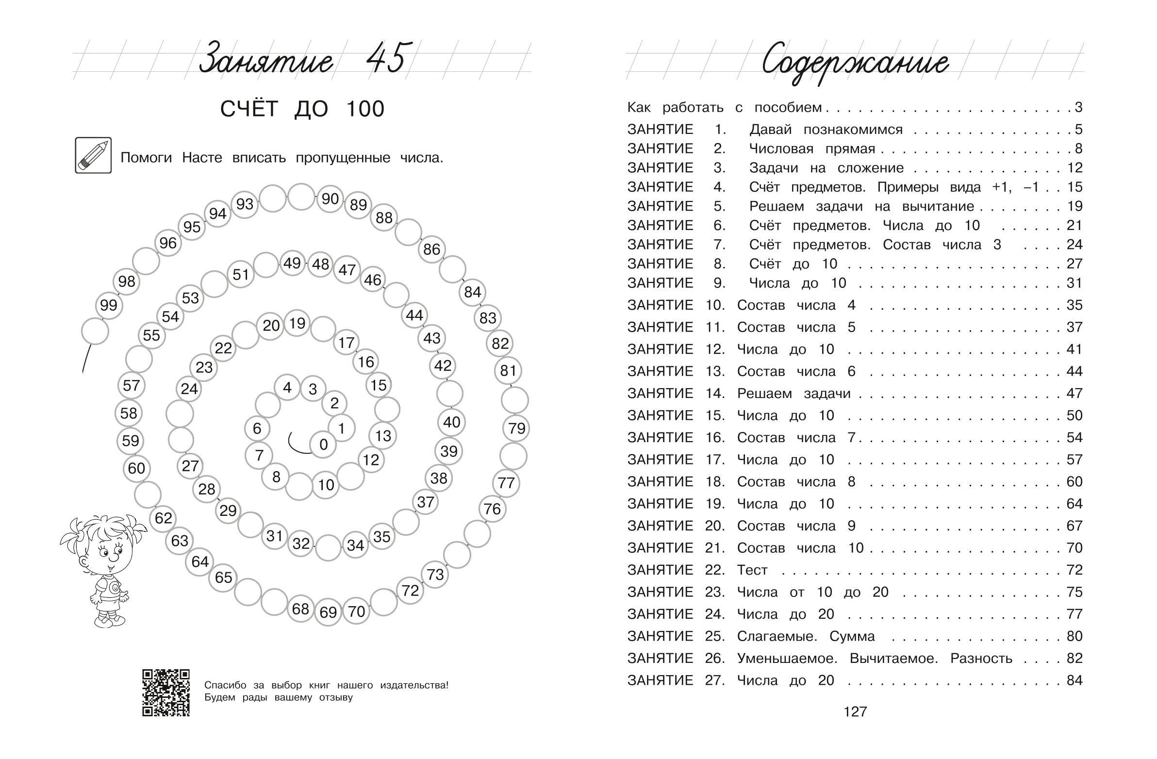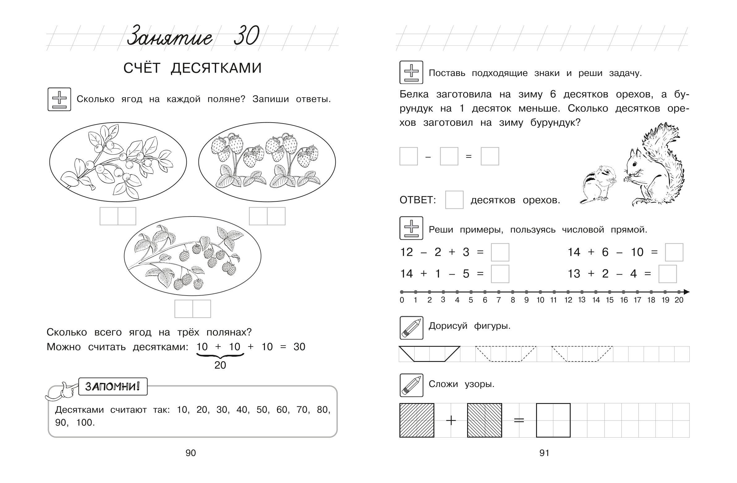 Легендарная серия обучающих пособий для развития ребенка и подготовки к школе теперь в черно-белом оформлении! Проверенная на практике и показавшая свою эффективность методика, умело сочетающая современные технологии обучения с лучшими классическими традициями российского образования, будет способствовать развитию у дошкольника математического мышления и познавательных способностей. Выполняя интересные игровые задания, ребенок повторит состав числа, будет решать примеры и задачи на сложение и вычитание с помощью числовой прямой в пределах 20, познакомится с четными и нечетными числами, углами, отрезками, плоскими и объемными фигурами, научится считать десятками, потренируется в определении времени по часам. Кроме того, для детей, успешно справившихся с основными упражнениями, в книге предлагаются более сложные задания - счет до 100, примеры с двузначными числами. Знания, умения и навыки, которые дошкольник приобретет в результате занятий, позволят ему почувствовать уверенность в себе и в дальнейшем их успешно использовать. Адресовано талантливым детям 6-7 лет, их заботливым родителям и неравнодушным педагогам и может быть использовано как при домашнем обучении, так и на занятиях в детском саду.| Издательство | ООО "Издательство "Эксмо" |