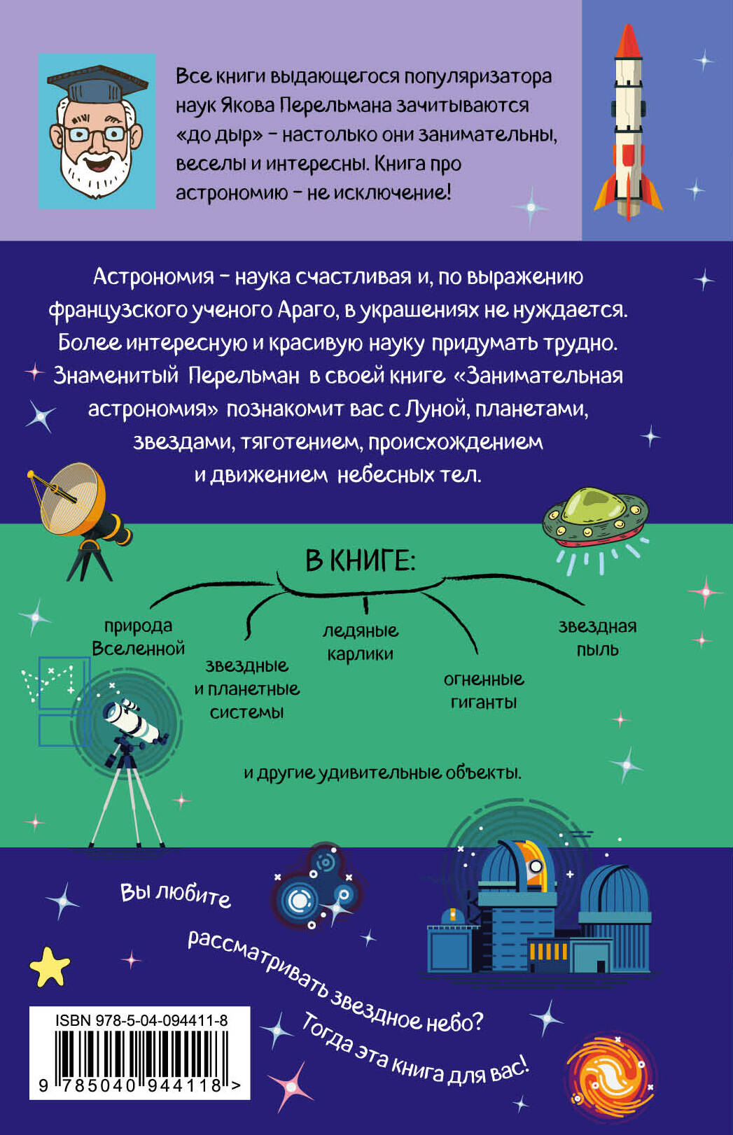 «Занимательная астрономия» выдающегося популяризатора науки Я.И. Перельмана расскажет об удивительной науке астрономии, о загадочном звездном небе. Книга расскажет об устройстве Вселенной и поможет провести настоящие астрономические наблюдения. А главное - разожжет искренний интерес к удивительному миру космоса, звезд и далеких планет. Книга предназначена для всех, кто интересуется астрономией: для любознательных школьников, их родителей а также для всех, кто хочет не заблудиться в космосе.| Издательство | ООО "Издательство "Эксмо" |