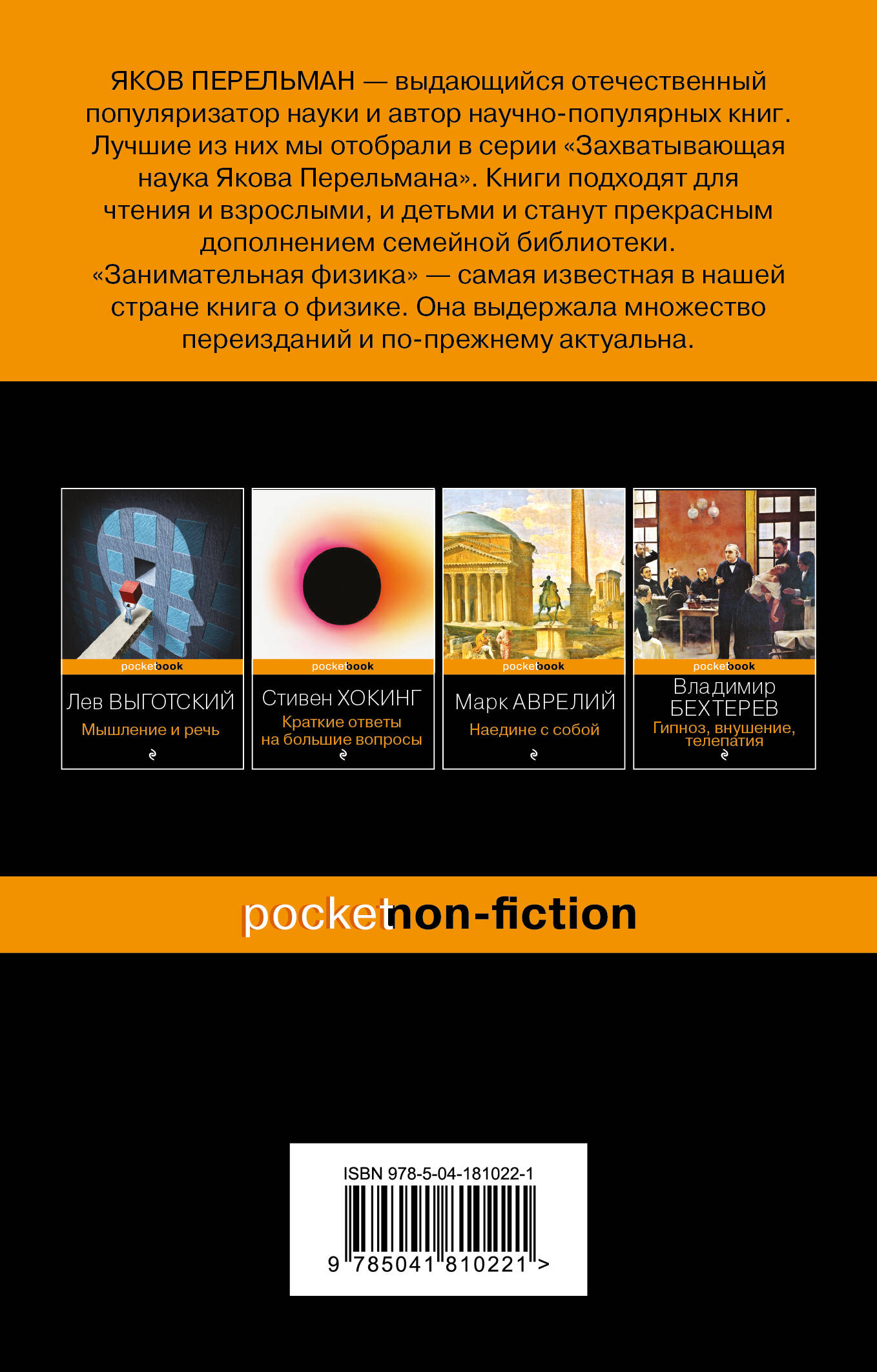 «Занимательная физика» - это лучшая отечественная книга о физике для всей семьи. С помощью увлекательных опытов и интересных историй Яков Перельман рассказывает о том, как устроен наш мир с точки зрения науки. А многие описанные здесь опыты вы сможете провести дома. Как работает двигатель? Почему мы видим и слышим мир вокруг нас? Что будет, если в автомобиль на полном ходу прилетит арбуз? Что такое инерция?| Издательство | ООО "Издательство "Эксмо" |