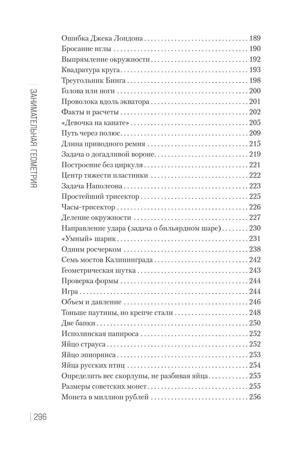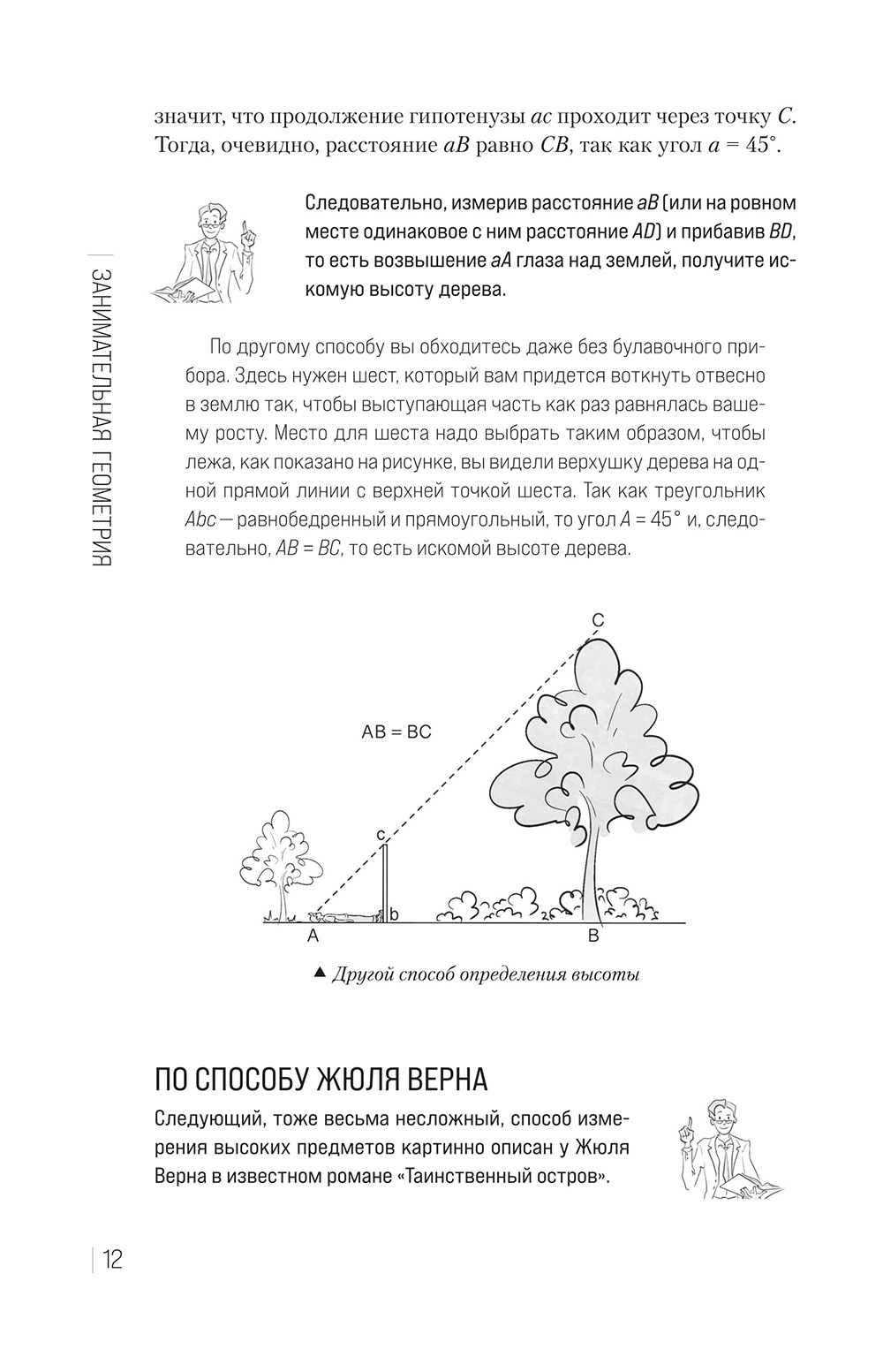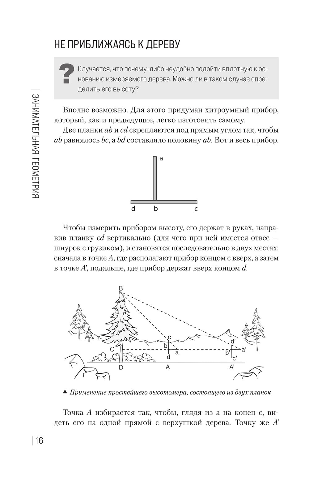 Яков Перельман доказывает, что геометрия - вовсе не «кабинетная» наука, созданная для мучения школьников. В каждом разделе этой книги собраны задачи и истории, которые помогут не только с легкостью запомнить сложные формулы, но и применить их на практике. Перельман разбирает не только известные теоремы, но и практичные житейские вопросы. Как измерить окружность стакана без линейки и сантиметра или сосчитать, сколько звезд отражается на поверхности реки? Почему у деревянных бочек выпуклые бока? Вы начнете получать удовольствие от науки и станете замечать законы геометрии повсюду: на улице, дома - и даже в художественной литературе! В «Занимательной геометрии», к примеру, рассказывается о том, какие геометрические ошибки допустили в своих книгах Свифт и Пушкин. Книга будет интересна не только детям, но и взрослым, а иллюстрации и схемы помогут лучше понять и усвоить материал.