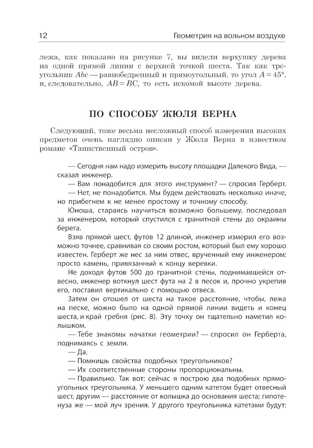В двенадцать лет Альберт Эйнштейн называл учебник геометрии своей «священной книгой». А еще великий ученый говорил: «Первые основы геометрии должны быть заложены не в школьной комнате, а на вольном воздухе». Знаменитый популяризатор науки Яков Исидорович Перельман, создававший развивающие книги для детей, которым скучно в рамках школьной программы, так и поступил: он вывел геометрию из школы на прогулку и сделал ее по-настоящему занимательной наукой. Оказывается, геометрия может многое. Как определить высоту дерева с помощью записной книжки? Можно ли взвесить растущее дерево? Как измерить ширину реки, не переплывая ее? Насколько муравей сильнее человека? Где горизонт дальше - на Земле, Луне или Юпитере? Как стать Робинзоном?.. На эти и многие другие неожиданные вопросы и головоломки можно найти ответ с помощью занимательной геометрии. Разобраться во всех ее премудростях поможет лучший гид по миру занимательных наук, терпеливый проводник и прекрасный рассказчик - Яков Перельман. Даже недругов геометрии он сумеет превратить в ее друзей! Продолжение путешествия - во второй части: «Занимательная геометрия между делом и шуткой». Книга для девочек, книга для мальчиков, а также для их родителей, бабушек и дедушек!| Издательство | Качели |