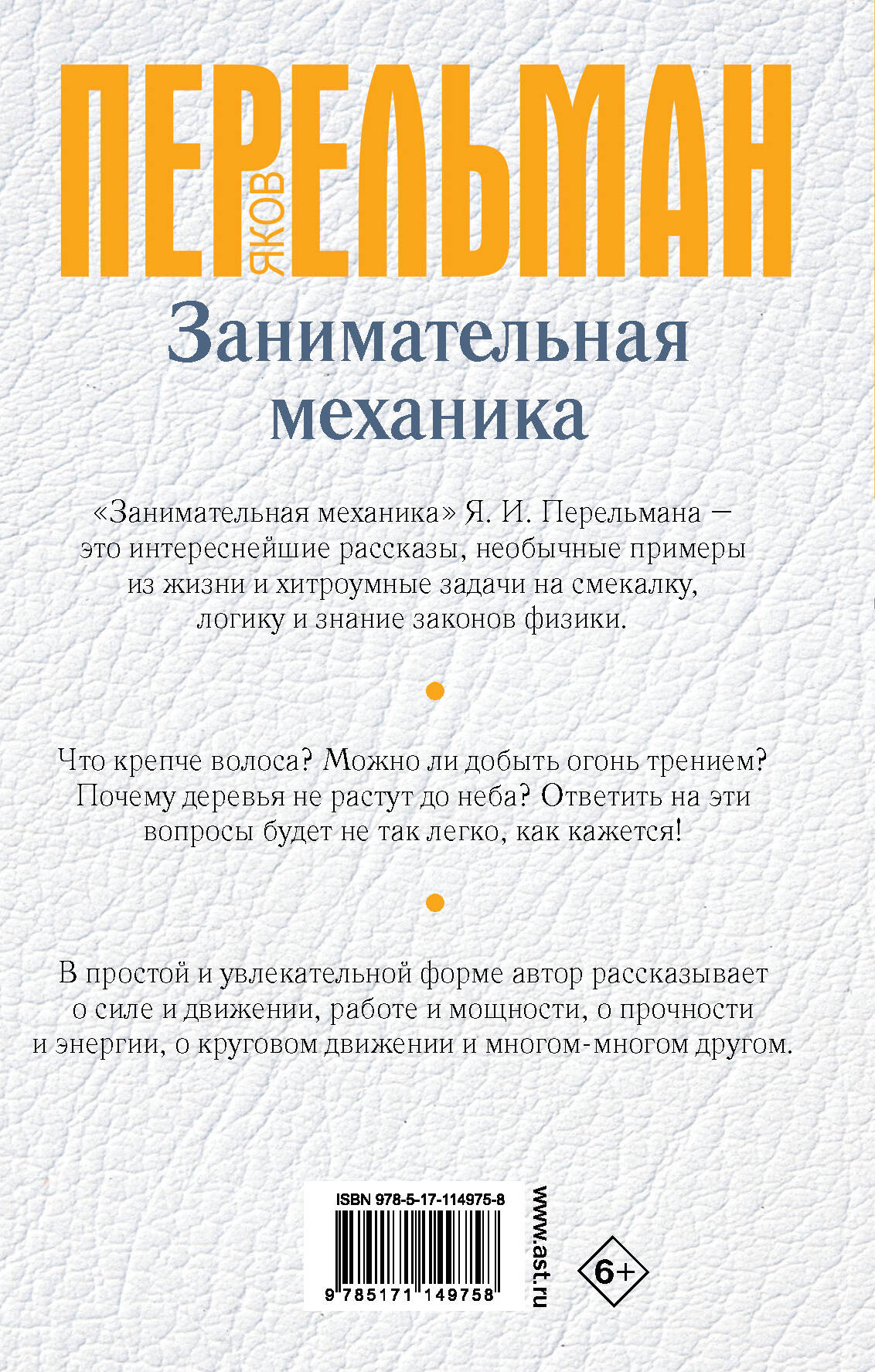 "Занимательная механика" Якова Перельмана - это интереснейшие рассказы, необычные примеры из жизни и хитроумные задачи на смекалку, логику и знание законов физики. В этой книге будет рассказано об основных законах механики, о силе и движении, работе и мощности, о круговом движении, трении и сопротивлении среды. О том, почему деревья не растут до неба, а динозавры не существуют по сей день. Для среднего школьного возраста.| Издательство | Издательство "АСТ" |