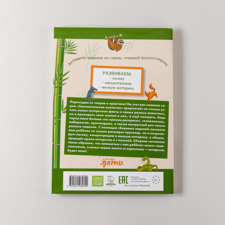 <div class="b-post-content _bookPage"><h2 id="o-chem">О чем</h2><p>Переходим от теории к практике! На этот раз новинка серии «Animal Books» предлагает не только узнать новые интересные факты о самых разных животных, но и проверить свои знания о них, а еще поиграть. Ведь перед вами больше ста страниц раскрасок, головоломок, лабиринтов, кроссвордов, а также инструкций для самых разных поделок. С помощью сборника задний-активити «Занимательная зоология» ваш ребенок не только расширит кругозор, но и потренирует логику, концентрацию и мелкую моторику, в общем, проведет время интересно и с пользой.</p><h2 id="zachem-chitat">Зачем читать</h2><p></p><ul><li>Проверить свои знания о животных и узнать новое;</li><li>Смастерить поделки, с которыми можно придумывать игры;</li><li>Тренировать полезные навыки.</li></ul><p></p><h2 id="dlya-kogo">Для кого</h2><p>Для детей от 5 лет. Сборник составлен таким образом, что заниматься с ним ребенок может самостоятельно, а может играть вместе со взрослыми -интересно будет всем!</p></div>| Издательство | Альпина. Дети |