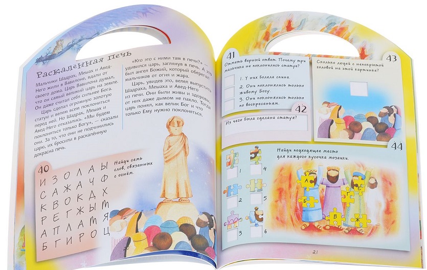 Самые увлекательные истории из Библии, а также 101 задание для развития памяти и сообразительности. И еще цветные наклейки.