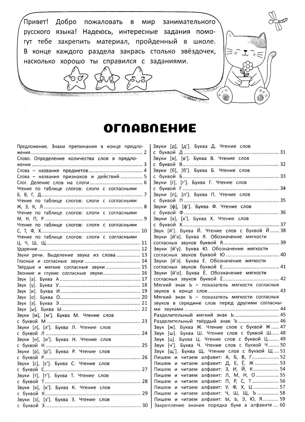 Это занимательный тренажер по русскому языку для 1 класса начальной школы. В рабочей тетради по русскому языку для детей 6, 7, 8 лет представлены разнообразные виды упражнений, которые помогут обучению письму, обучению грамоте, закрепить материал, изученный на уроках, а также пополнить словарный запас и научиться писать грамотно. В детской книге Вы найдете правила орфографии, прописи, проверочные работы и интересные задачи, разработанные специально для младших школьников. Тренажер по чистописанию для 1 класса поможет развить мелкую моторику, внимание, память ребенка, а также развить его воображение. Рабочие тетради серии «Занимательный русский язык» имеют яркие иллюстрации и предлагают игровые задания, что делает их нескучными для детей младшего школьного возраста. Данное учебное пособие можно использовать для дополнительных занятий как в школе, так и дома, для повторения материала во время каникул. Книга является прекрасным выбором для комплексного образования, просвещения и развития ребенка, помогая улучшить его умения в грамоте и письме на родном русском языке. Кроме того, рабочая тетрадь по русскому языку может стать отличным подарком девочке и мальчику на День Рождения, выпускной, 1 сентября или подарком просто так для малышей школьников, которые любят заниматься развивающими заданиями.| Издательство | Харвест |