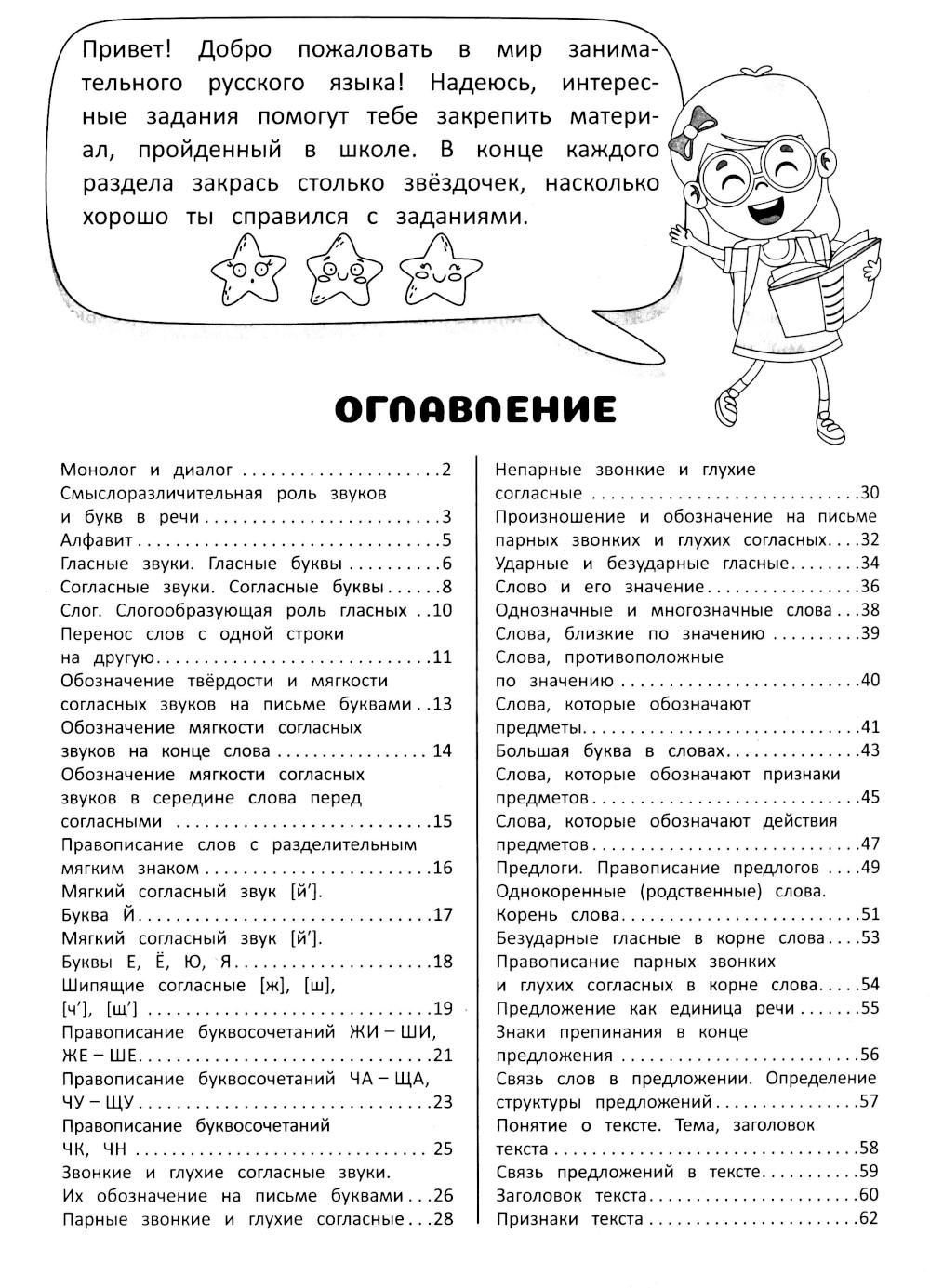 Это занимательный тренажер по русскому языку для 2 класса начальной школы. В рабочей тетради по русскому языку для детей 7, 8, 9 лет представлены разнообразные виды упражнений, которые помогут обучению письму, обучению грамоте, закрепить материал, изученный на уроках, а также пополнить словарный запас и научиться писать грамотно. В ней Вы найдете правила орфографии, проверочные работы и интересные задачи, разработанные специально для младших школьников. Тренажер по чистописанию для 2 класса поможет развить мелкую моторику, внимание, память ребенка, а также развить его воображение. Рабочие тетради серии «Занимательный русский язык» имеют яркие иллюстрации и предлагают игровые задания, что делает их нескучными для детей младшего школьного возраста. Данное учебное пособие можно использовать для дополнительных занятий как в школе, так и дома, для повторения материала во время каникул. Оно является прекрасным выбором для комплексного образования, просвещения и развития ребенка, помогая улучшить его умения в грамоте и письме на родном русском языке. Кроме того, рабочая тетрадь по русскому языку может стать отличным подарком девочке и мальчику на День Рождения, выпускной, 1 сентября или подарком просто так для малышей школьников, которые любят заниматься развивающими заданиями.| Издательство | Харвест |