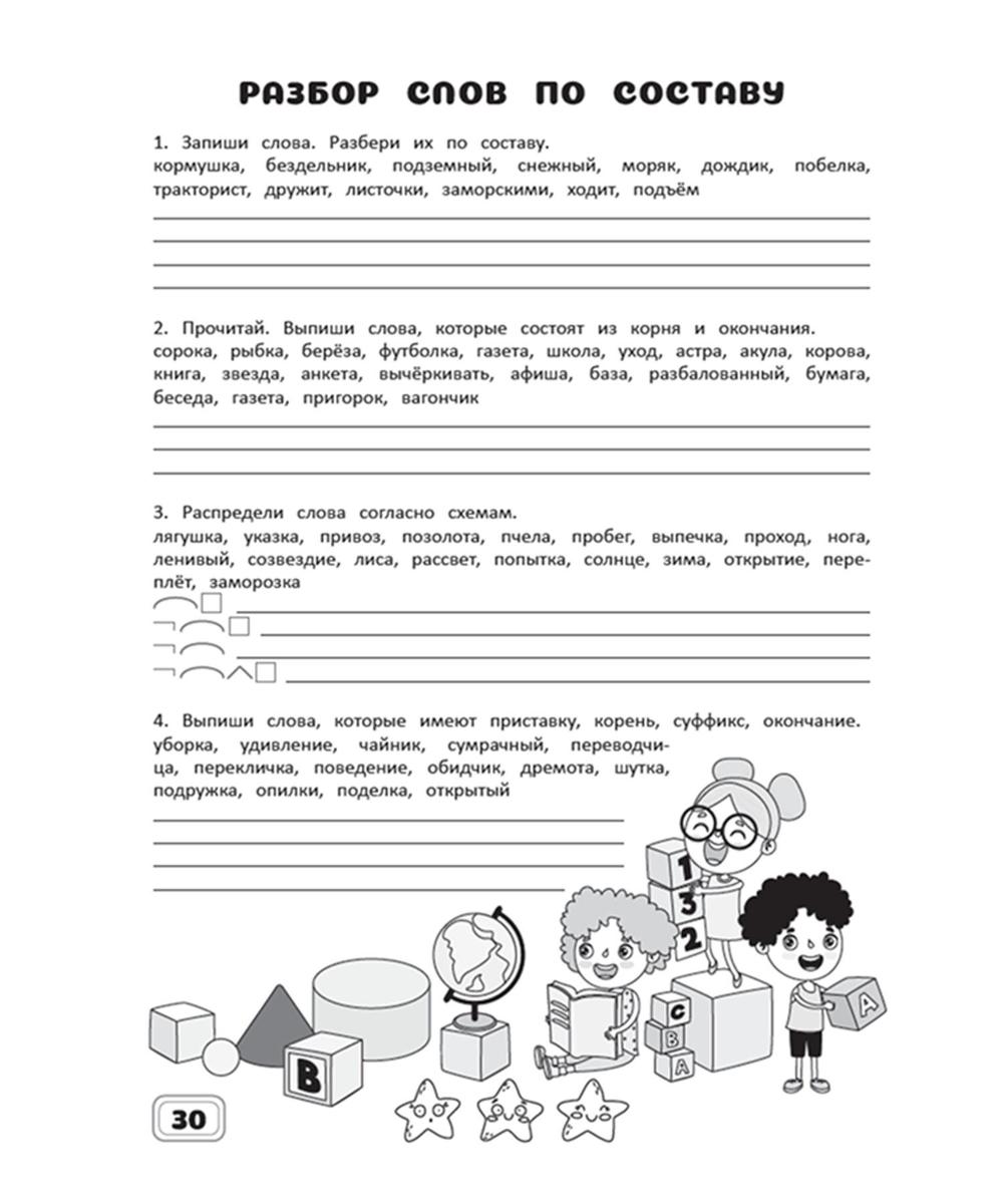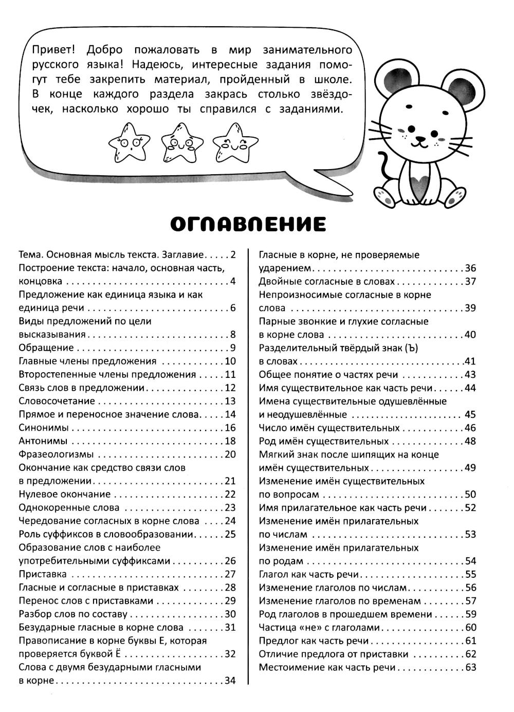 Это занимательный тренажер по русскому языку для 3 класса начальной школы. В рабочей тетради по русскому языку для детей 8, 9, 10 лет представлены разнообразные виды упражнений, которые помогут обучению письму, обучению грамоте, закрепить материал, изученный на уроках, а также пополнить словарный запас и научиться писать грамотно. В ней Вы найдете правила орфографии, проверочные работы и интересные задачи, разработанные специально для младших школьников. Тренажер по чистописанию для 3 класса поможет развить мелкую моторику, внимание, память ребенка, а также развить его воображение. Рабочие тетради серии «Занимательный русский язык» имеют яркие иллюстрации и предлагают игровые задания, что делает их нескучными для детей младшего школьного возраста. Данное учебное пособие можно использовать для дополнительных занятий как в школе, так и дома, для повторения материала во время каникул. Оно является прекрасным выбором для комплексного образования, просвещения и развития ребенка, помогая улучшить его умения в грамоте и письме на родном русском языке. Кроме того, рабочая тетрадь по русскому языку может стать отличным подарком девочке и мальчику на День Рождения, выпускной, 1 сентября или подарком просто так для малышей школьников, которые любят заниматься развивающими заданиями.| Издательство | Харвест |