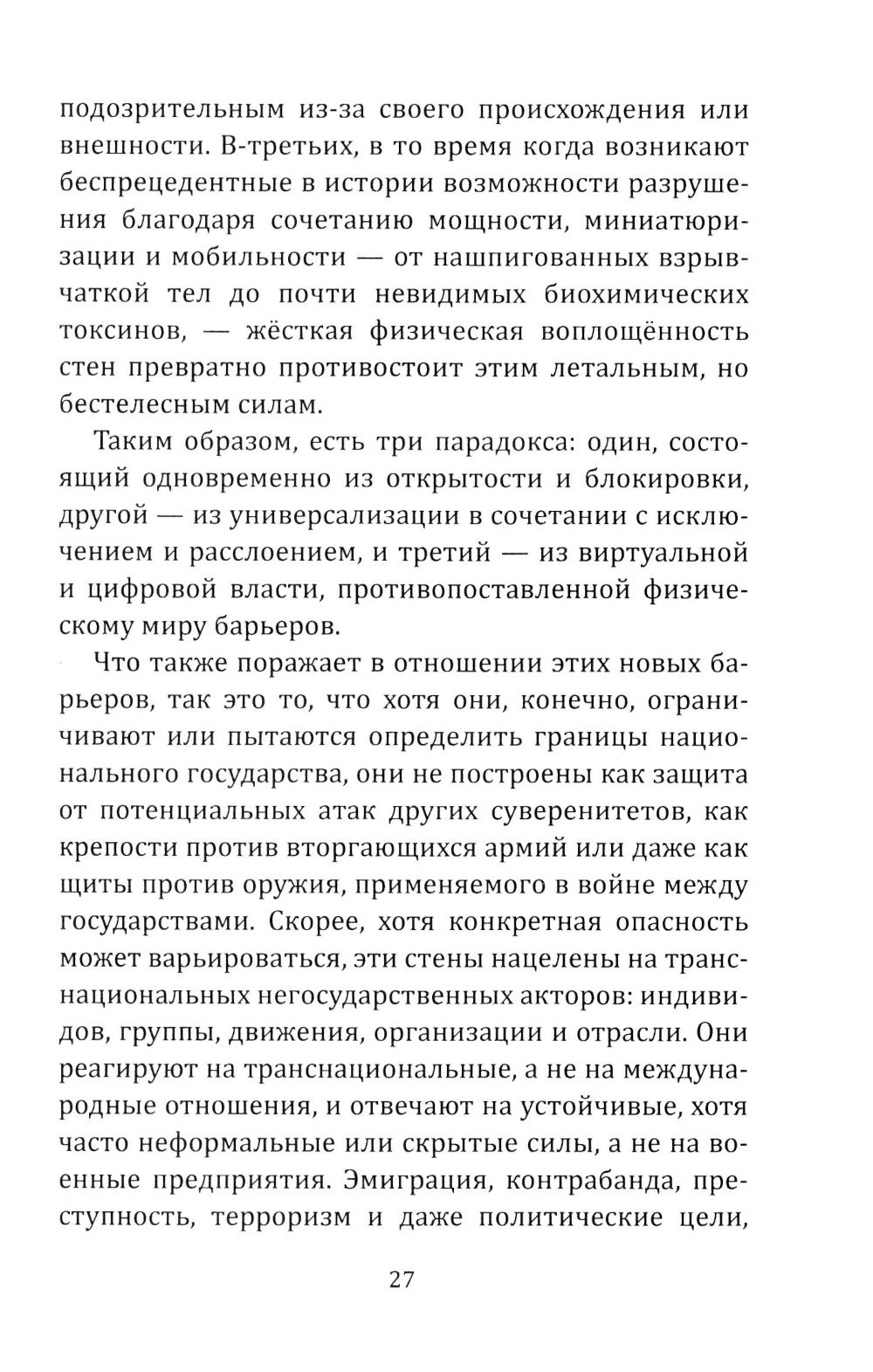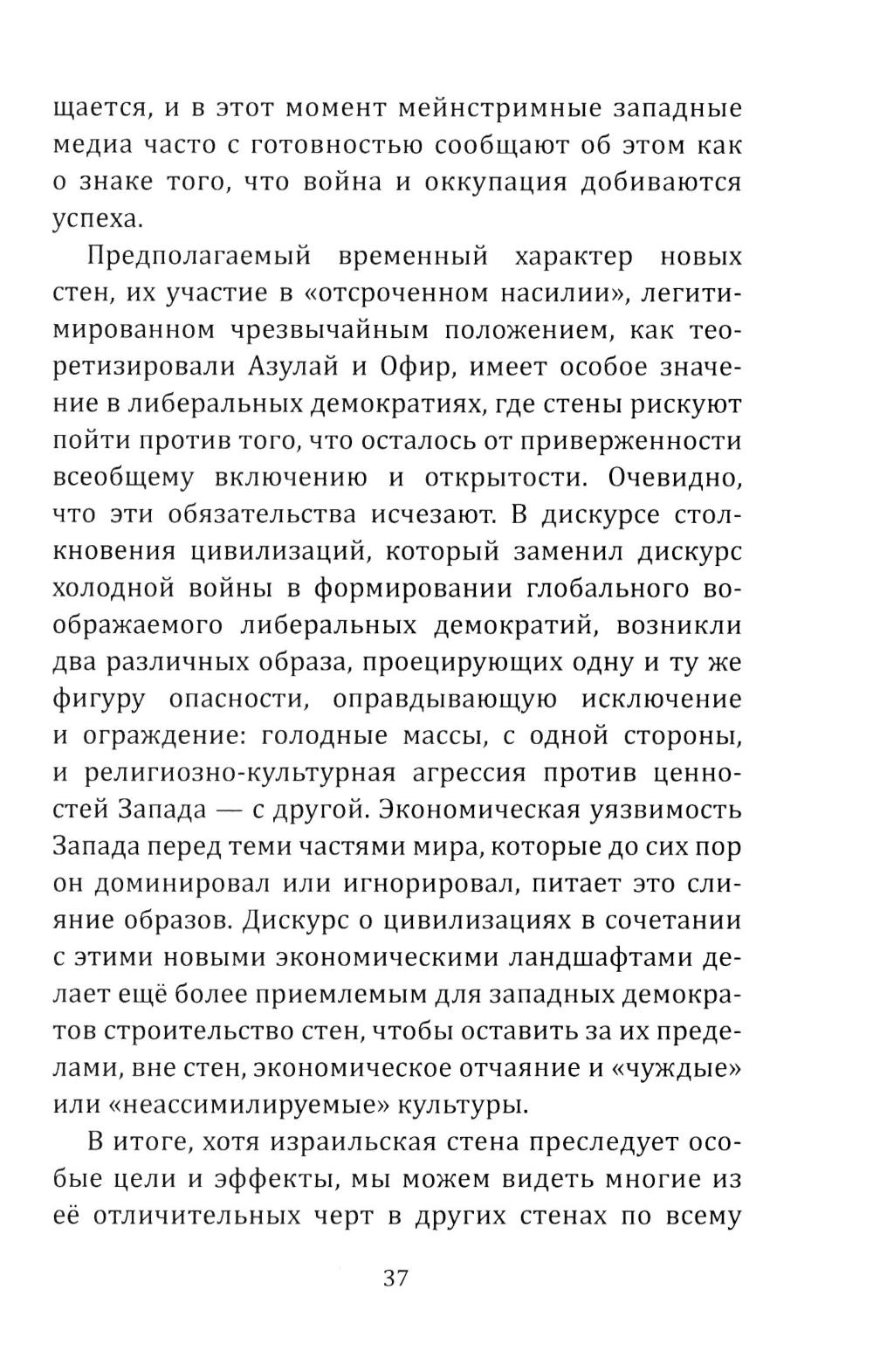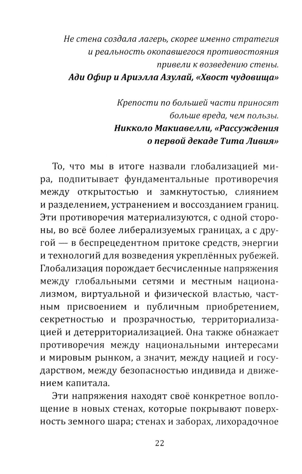 Венди Браун - одна из важнейших мыслительниц современной Америки. На протяжении многих лет она разоблачала империалистическую политику Соединённых Штатов, участвовала в акциях солидарности с народами Кубы, Никарагуа, Венесуэлы и т.д. В этой книге она раскрывает один из парадоксов современной западной политики: удивительную тягу к строительству стен, наложению санкций, закрытию границ, эмбарго и т.д. Запад называет неугодные ему страны «государствами-изгоями», грозит «изгнать их из мирового сообщества», но фактически сами замыкаются в себе и отгораживается от других. Удивительно, но западная демократия, в 1990-е годы обещавшая создать мир без границ и барьеров, теперь сама окружает себя заборами с колючей проволокой. Стены на границах с Мексикой и Сектором Газа, мины и патрули у южных берегов Италии - это не признак силы. Это признак слабости и деградации Запада, который уже ничего не контролирует, но хочет, чтобы его боялись...| Издательство | Родина |
