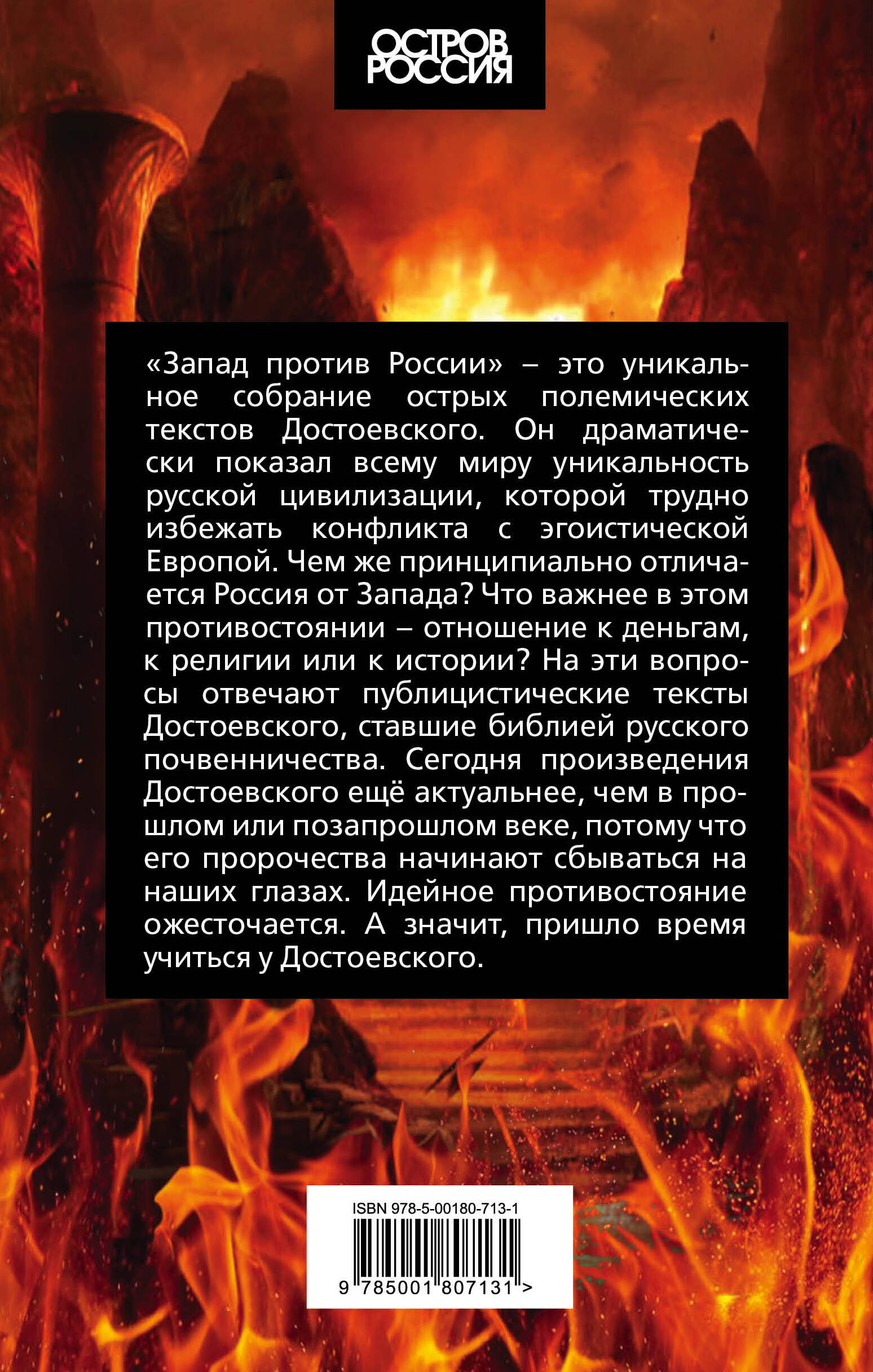 «Запад против России» - это уникальное собрание острых полемических текстов Достоевского. Он драматически показал всему миру уникальность русской цивилизации, которой трудно избежать конфликта с эгоистической Европой. Чем же принципиально отличается Россия от Запада? Что важнее в этом противостоянии - отношение к деньгам, к религии или к истории? На эти вопросы отвечают публицистические тексты Достоевского, ставшие библией русского почвенничества. Сегодня произведения Достоевского еще актуальнее, чем в прошлом или позапрошлом веке, потому что его пророчества начинают сбываться на наших глазах. Идейное противостояние ожесточается. А, значит, пришло время учиться у Достоевского.