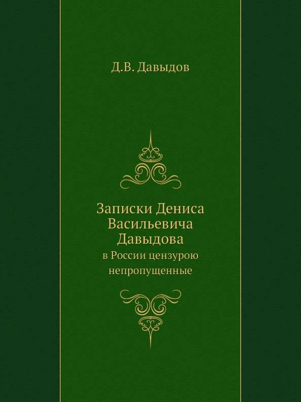 Уникальное издание необычайно острых по своей политической значимости записок Дениса Васильевича Давыдова, едва ли не самого знаменитого героя Отечественной войны 1812 г. Цензура не могла разрешить сделать достоянием гласности отзывы независимого в своих суждениях Давыдова о членах императорской фамилии, о генералах, политиках и дипломатах своего времени, о наиболее резонансных событиях в стране, свидетелем (а иногда - и участником) которых он был. Оценки Давыдовым действий правительства и военного руководства в отношении русской армии, военных действий во время польского восстания 1830 года резко расходились с официальной точкой зрения, принятой в государственных кругах. Эти записки имеют колоссальное значение для историков-профессионалов и для всех истинных любителей отечественной истории. Издание "Записок" было осуществлено в Брюсселе в 1863 году широко известным публицистом и историком, активным деятелем Вольной русской печати князем Петром Долгоруковым. (1863 S. Tchorzewski)