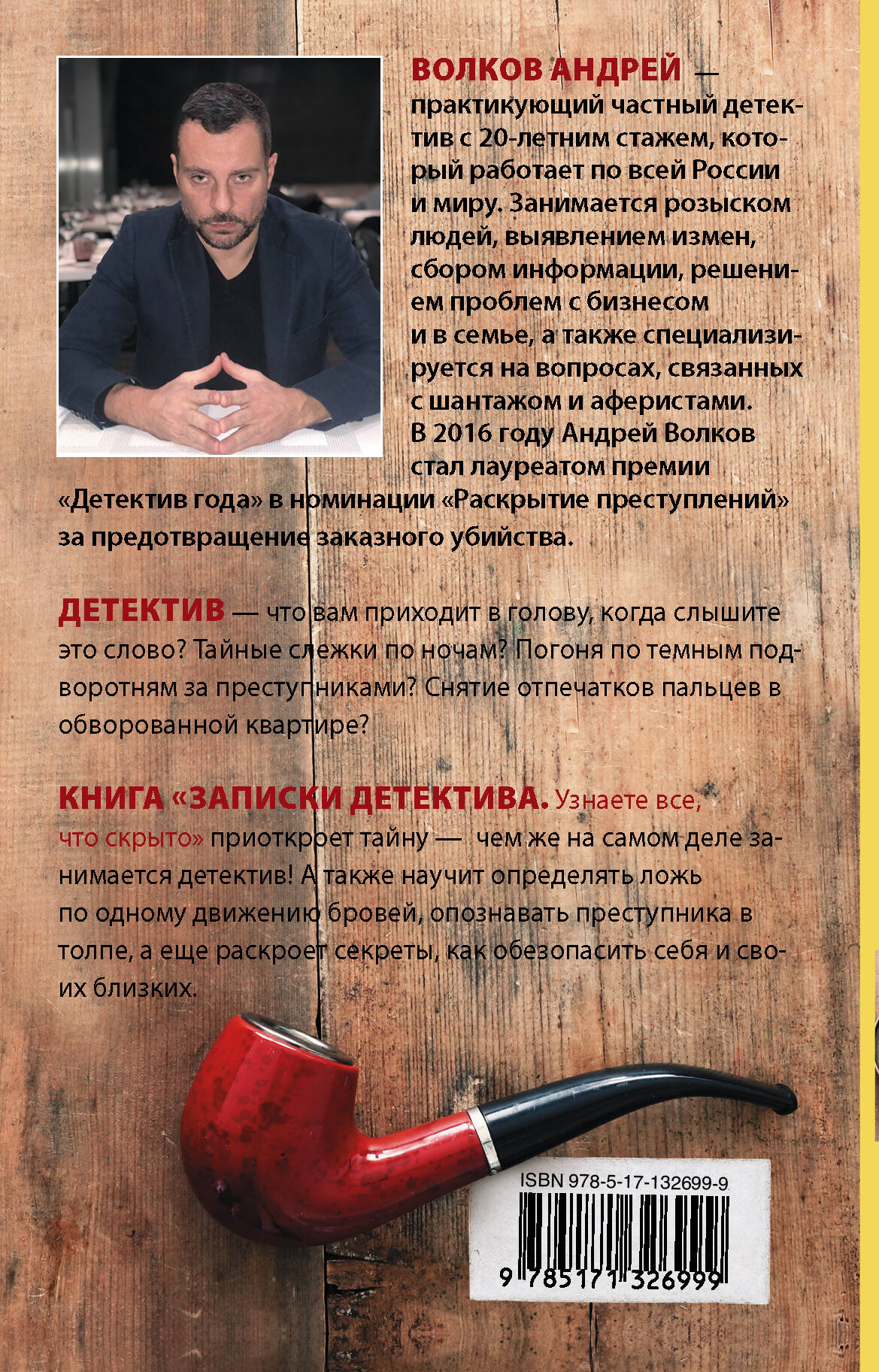 "Записки детектива. Узнаете все, что скрыто" - первая в своем роде книга, раскрывающая реальную сторону жизни детектива. Автор поделится историей своей карьеры, откроет секреты поимки опасных преступников, а также расскажет секреты, как обезопасить своих родных и близких.| Издательство | ИЗДАТЕЛЬСТВО "АСТ" |