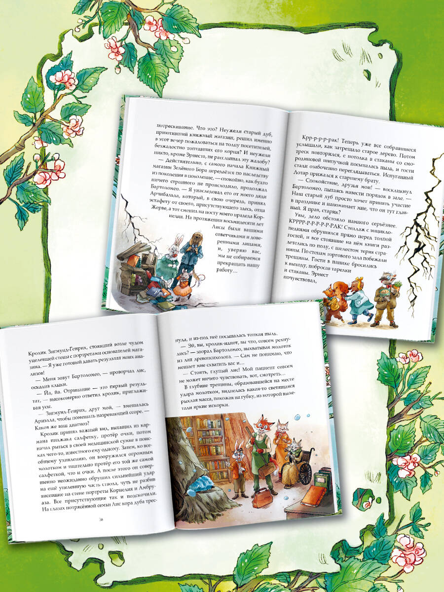 Все в Зелёном Бору знают, что каждый написавший книгу зверь может оставить её в Книжном магазине Лисов. В этом году их семейство готовится отпраздновать восьмидесятилетие магазина. Но в самый разгар юбилея внезапно ломается огромная ветка дуба, в котором он располагался. Это первый признак страшной болезни - гриба древожора. Избавиться от него невозможно, и есть только одно решение - срубить всё дерево. Лисёнок Эрнест, сын Бартоломео, не готов смириться с этим диагнозом. Ведь старый дуб хранит не только работы, но и воспоминания о его матери Аннете. Теперь только дерево желаний - волшебная яблоня, легенду о которой рассказала ему когда-то давно мама, - может сотворить чудо. Но где именно искать его в лесу? Юному путешественнику и его спутникам предстоит пройти непростой путь: преодолеть горе своих потерь и страхов, найти утешение в самих себе и смело открыть новую главу своей жизни. Ведь иногда прощания тоже необходимы! Настоящая ода любви и принятию!| Издательство | Издательство "АСТ" |